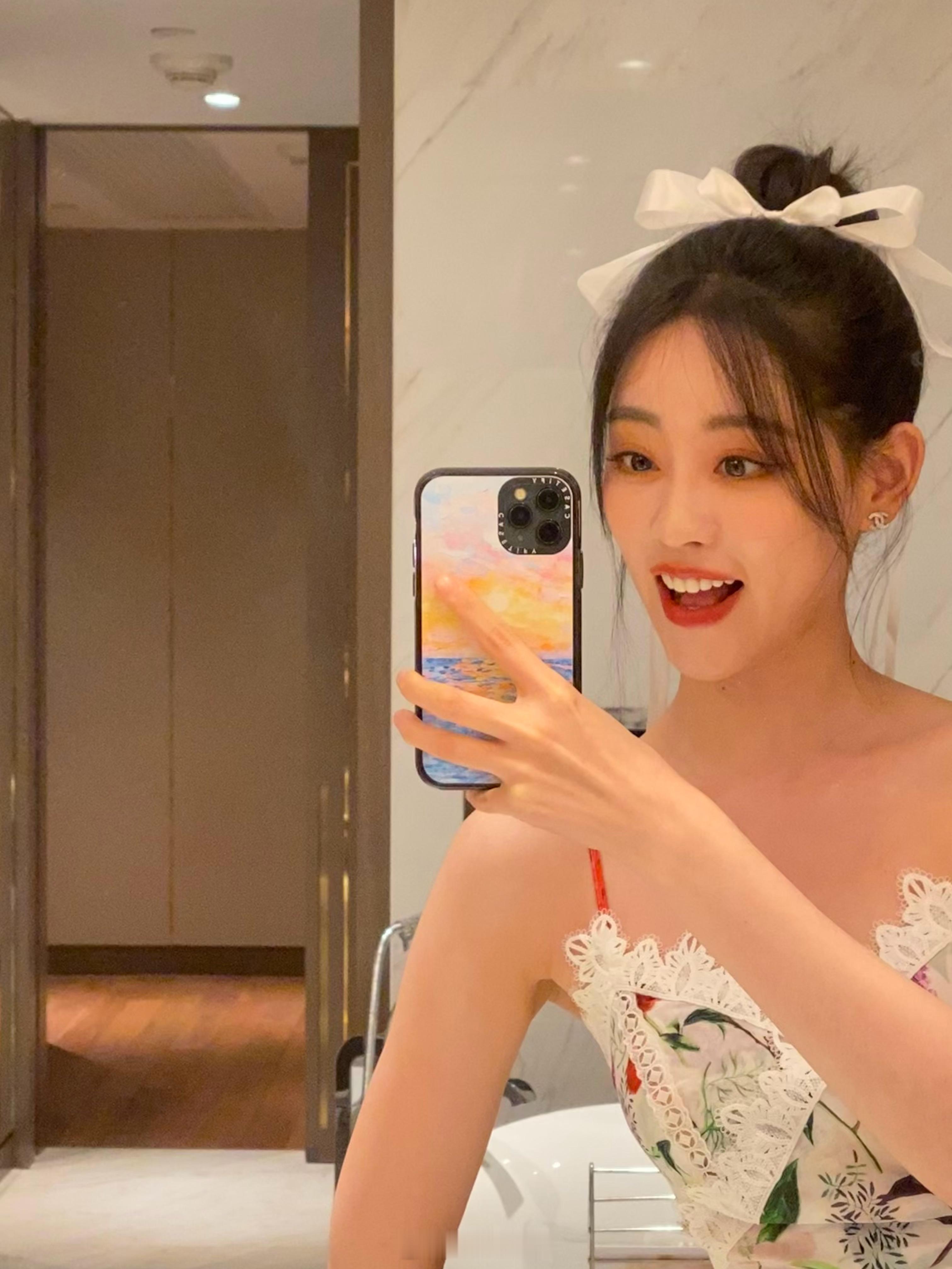 刘亦菲把死亡玫粉穿出了定制款的感觉,这种颜色普通人穿上分分钟黑三度,她居然能穿出
