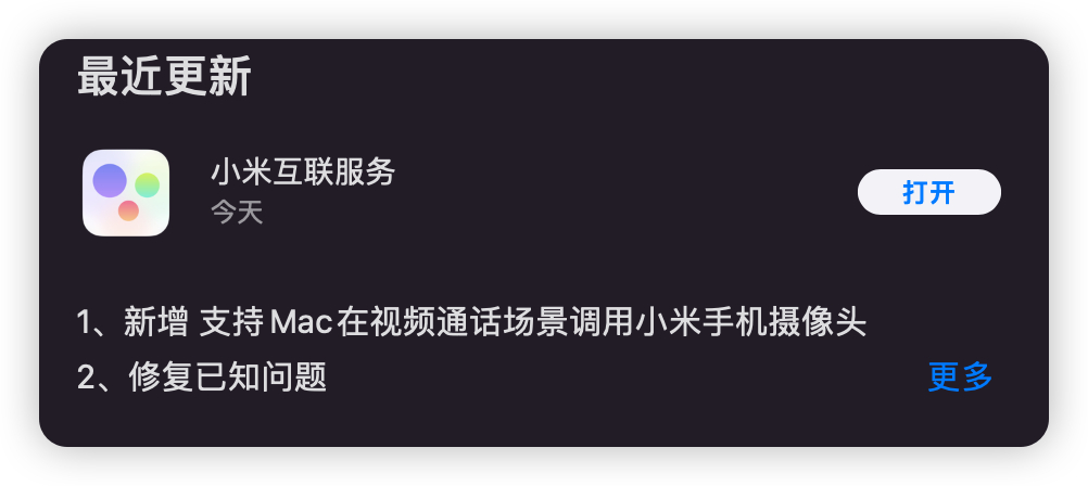小米够可以的,悄悄更新这么实用的功能不告诉我是吧1.直接通过mac调用小米手机的摄像头,录屏、通话或直播都能用2.通过mac解锁手机,多屏协同不用再动手机