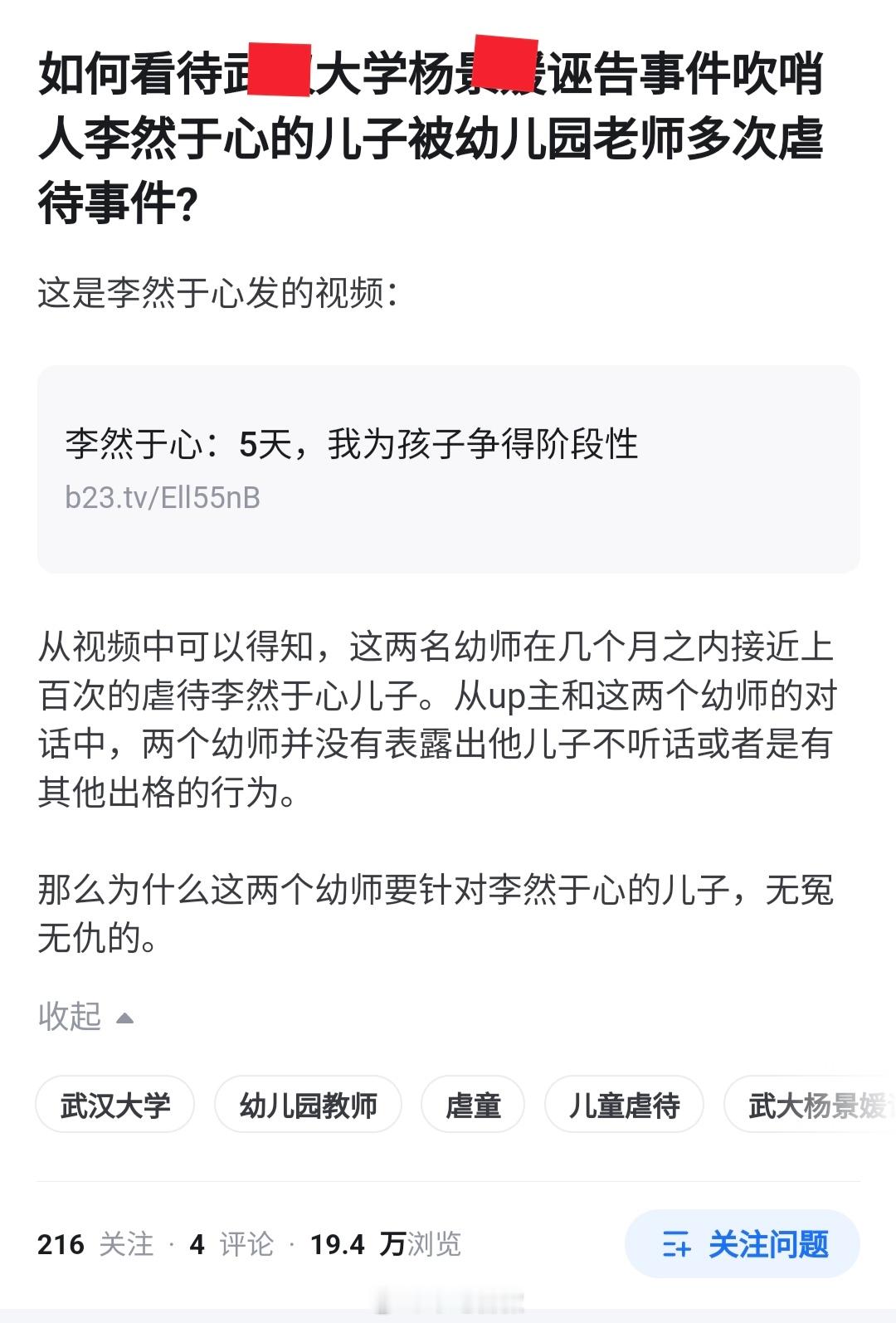 近日教育博主“李然于心”称:其5岁的儿子在武汉一家幼儿园遭两名幼师长期欺凌,包括无故打骂、刻意孤立等行为。目前两名涉事幼师已被园方辞退,当地警方也已就此事行政立案。⭐都知道为什么会这样,却又没什么办法,光曝出来的就有70万的生活组,谁知道后面还有什么妖魔鬼怪