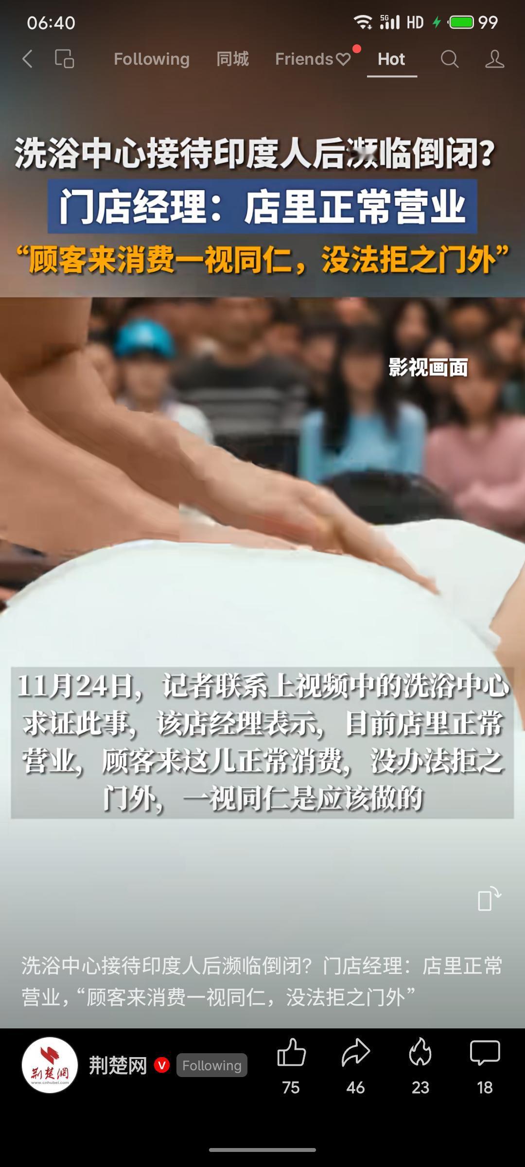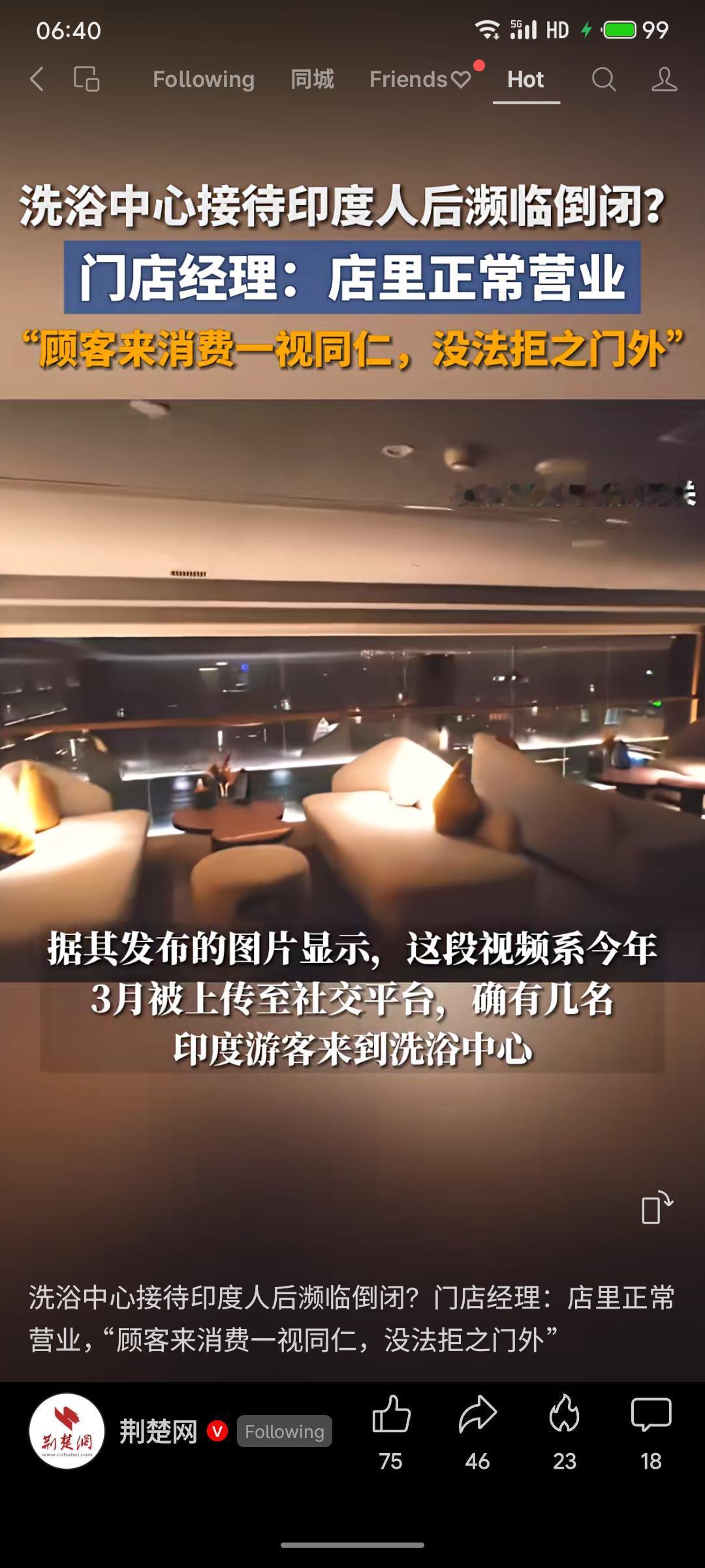 网传哈尔滨一洗浴中心因接待印度游客“濒临倒闭”引发关注。门店经理回应称,该店正常营业,对所有消费者一视同仁,不会拒绝任何顾客。该传闻实为不实信息。