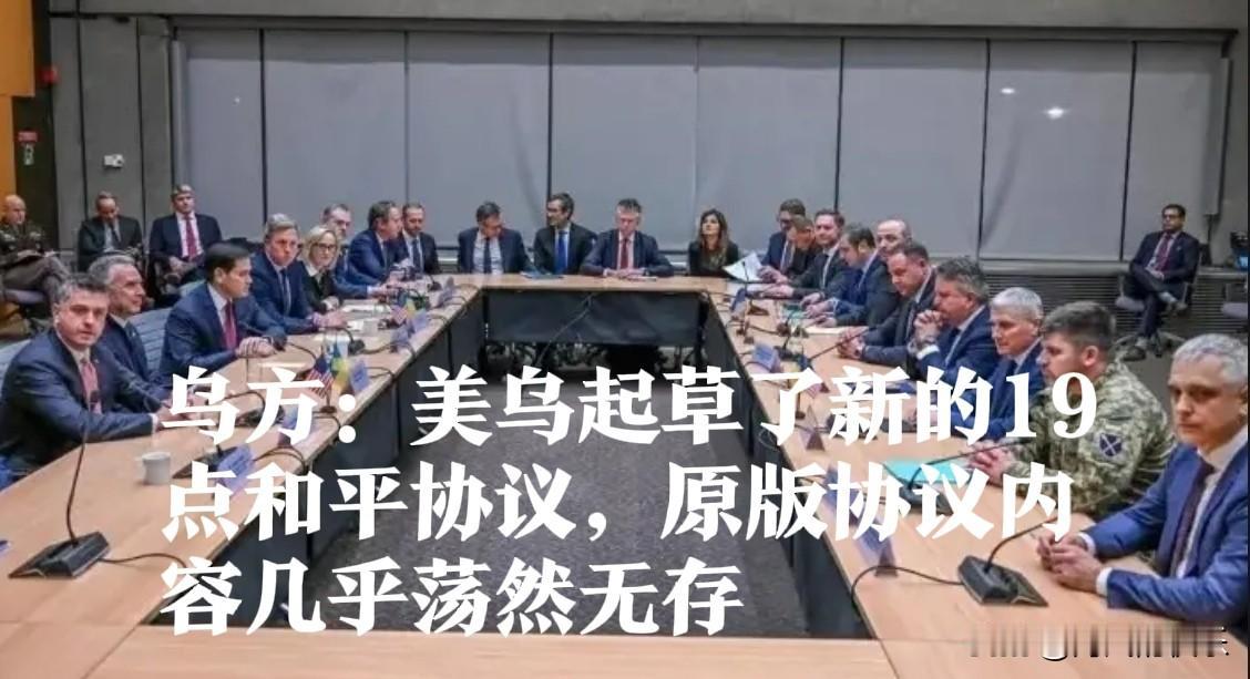 乌方:美乌起草了新的19点和平协议,原版协议内容几乎荡然无存 据外媒报道