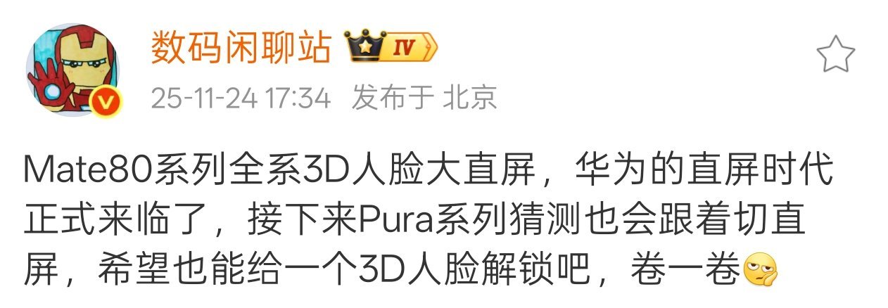 麒麟9030,全系直屏,Pro Max双层OLED,第二代红枫影像,新的玄武架构,3D人脸……下午就是发布会了,蹲一手价格。这一代估计又要溢价不少。当然,首先得能抢到