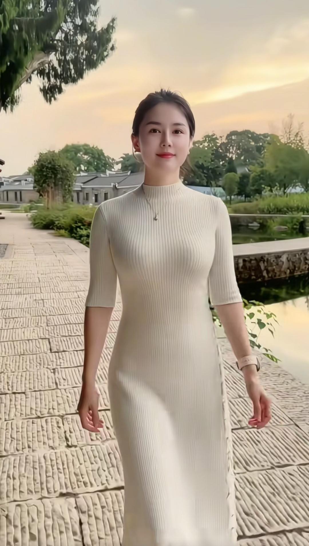 美女穿上针织连衣裙,那气质直接拉满,都市女性风范这不就有了嘛。 像一袭裸色针织修身裙,半高领和短袖简约又优雅,贴身剪裁把身材曲线勾勒得恰到好处,搭配白色尖头短靴,大长腿既视感。再加上精致银饰点缀,知性又妩媚。 还有白色V领露肩修身针织裙也超绝。细密竖向纹理面料垂坠感好,V型露肩交叉设计露出锁骨,性感又克制。袖长及肘、腰部褶皱收束、A字短裙下摆,拉长腿部线条。时尚层次感一下就有了,日常通勤或半正式场合穿都很合适,高级感满满。