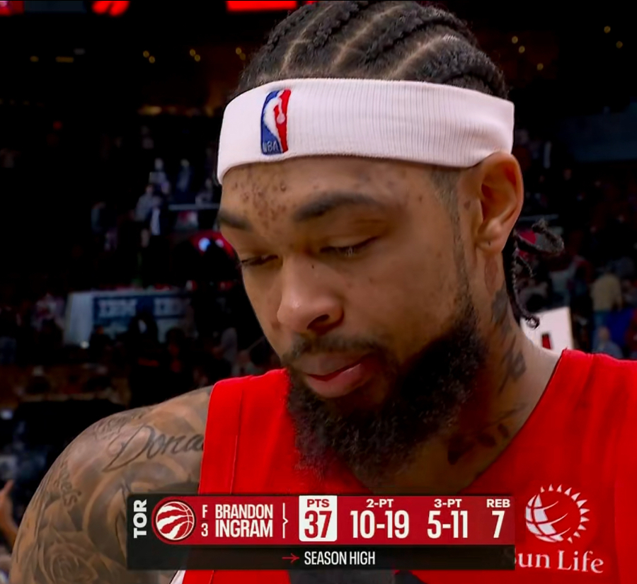 东部第二的猛龙8连胜了,战胜的还是东部第三的骑士,彻底变天。英格拉姆打出猛龙生涯最强一战,前三节32分,末节最后投中决定比赛的三分,全场砍下37分7篮板。此前猛龙是一支极致打快的球队,但莺歌的到来,让猛龙也能慢下来打阵地,球队得分点也多,这是他们这赛季最大的改变。