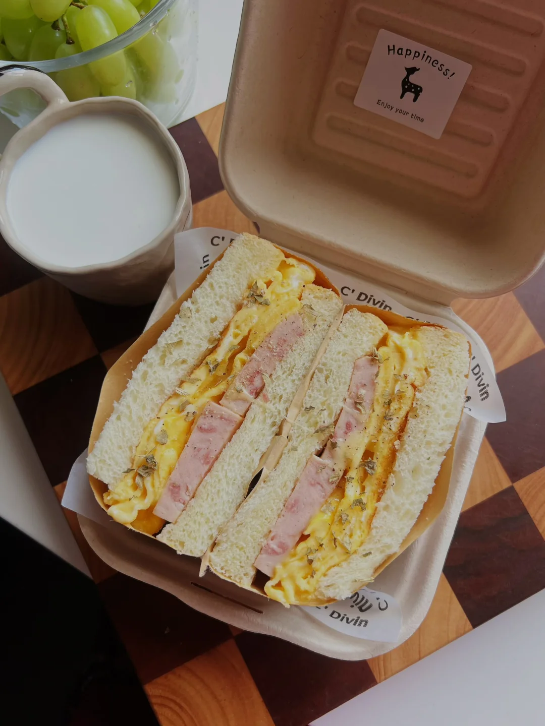 早上用它做了午餐肉厚蛋烧三明治🥪