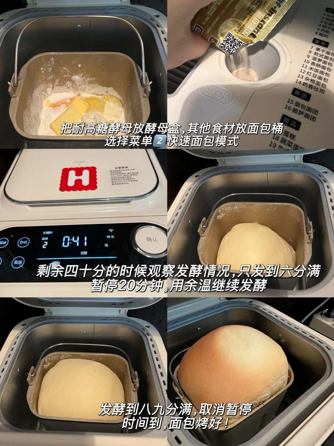 把耐高糖酵母放酵母盒,其他食材放面包桶,选择菜单2️⃣快速吐司,烤色:浅