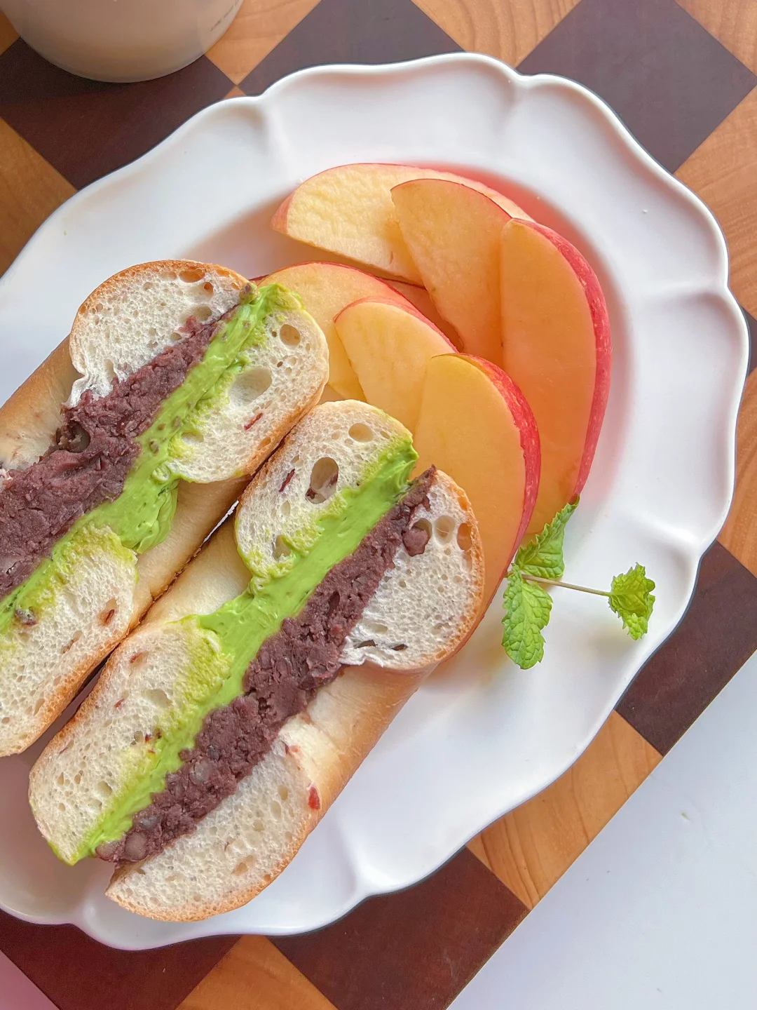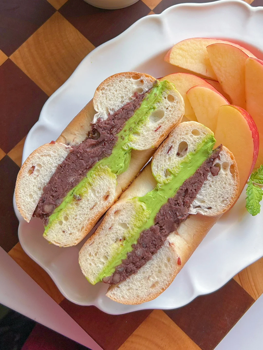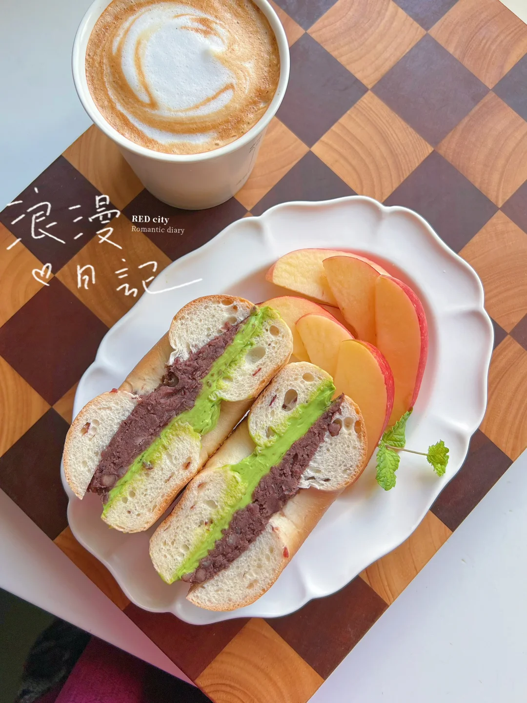 爱死了这个三明治🥪抹茶奶酪红豆沙🥯