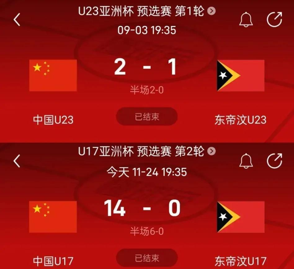 中国足球人才倍出,09年龄段涌现出不少新星,10年来中国足球A级赛再次打出12球以上大比分,中国U16国少14比0东帝汶,这批U16比上村健一那一批还好,中国足球复苏有望,相信中国足球从现在开始,一定会越来越好。 久尔杰维奇的那批U20就已经算很强了,拥有王钰栋、蒯纪闻、刘诚宇、朱鹏宇、毛伟杰和依木兰等众多新星,但是有这些人的中国U22,上次亚预赛也才2比1艰难战胜东帝汶,但是这支浮嶋敏率领的中国U16,14比0狂胜东帝汶,真的太强了,赛前根本没有想到能出现这种大胜。 本场比赛中国队7人进球,竟然有3人完成帽子戏法,分别是谢晋、帅惟浩和赵松源三位球员都完成了帽子戏法,此外张伯霖梅开二度,王贺毅、万项和张旭尧也各有1球进帐,还有邝兆镭没有上场,这批中国U16国少真的是新星倍出啊!中国足球复苏真的有希望,中国足球加油!