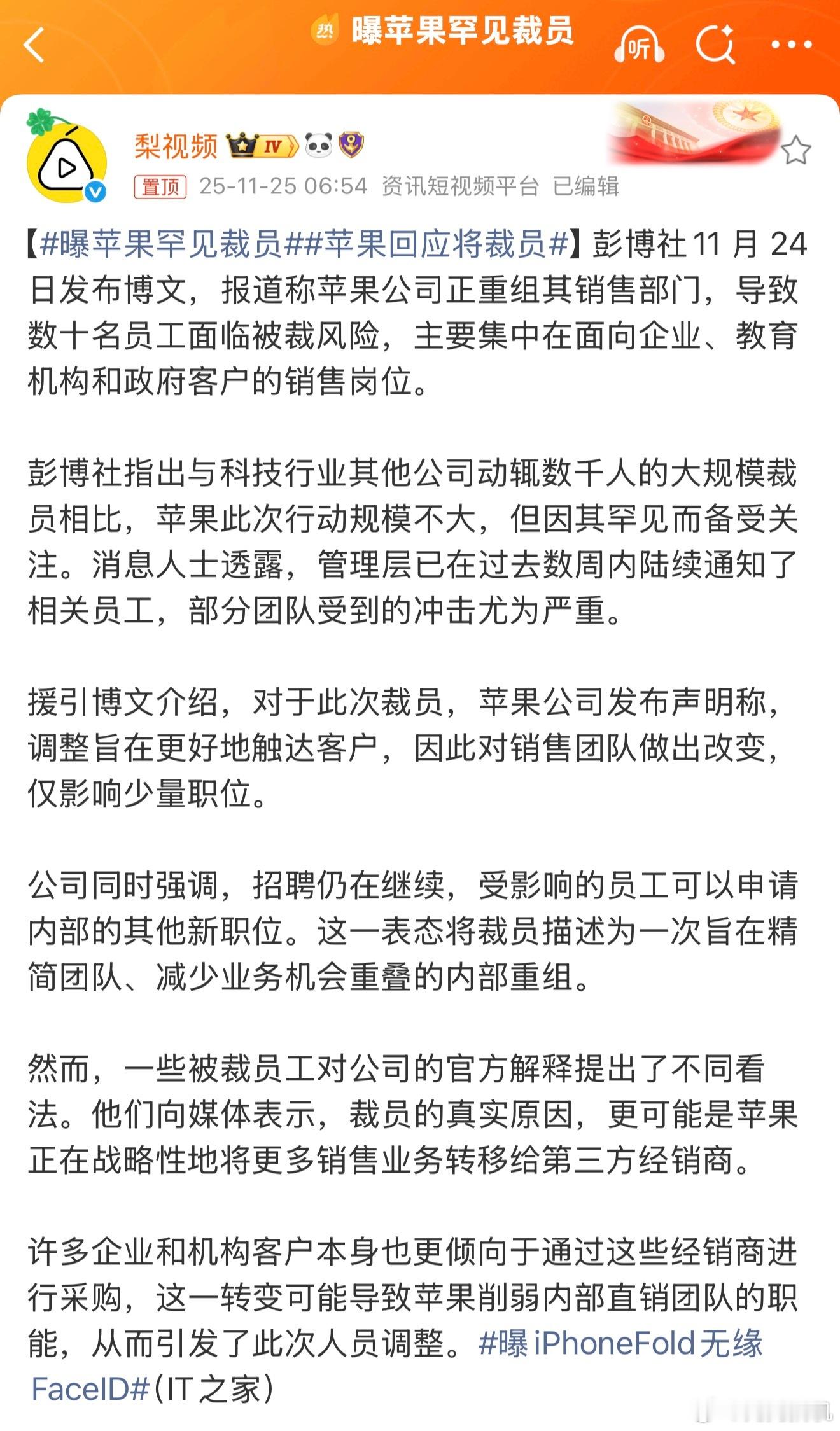 正常的结构优化吧 不过之前确实苹果很少有裁员现象,难免引起关注了。