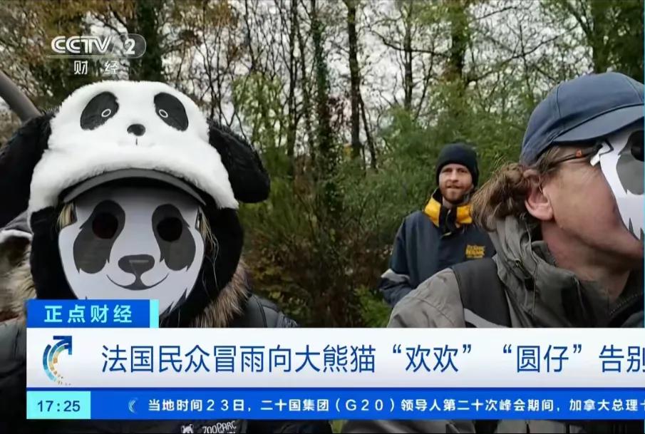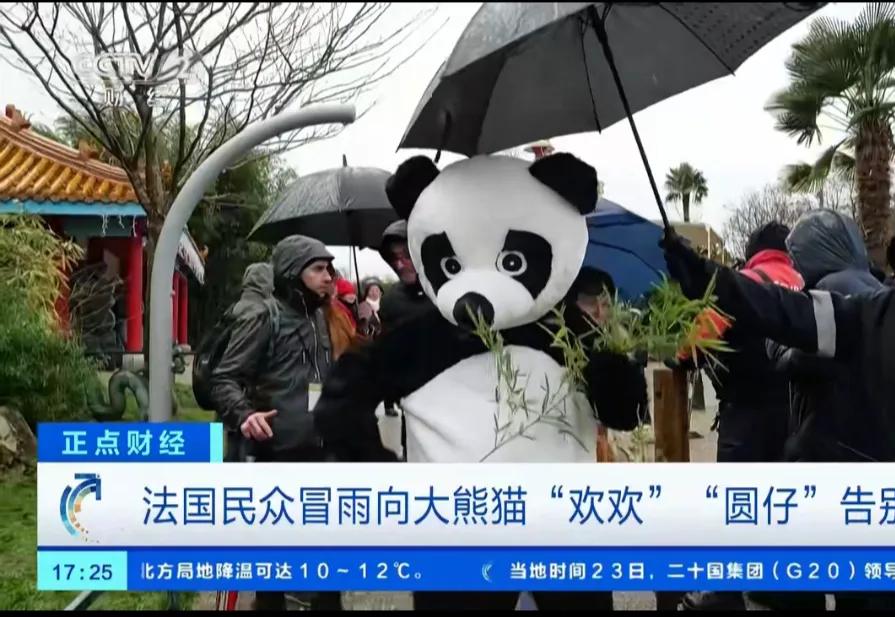 法国人真的把熊猫宠上天了!圣艾尼昂的博瓦勒动物园里,“欢欢”和“圆仔”要回国,好多人冒雨赶来送别,有的戴着熊猫帽、有的套着熊猫面具,就想多看这俩小可爱一眼。 这两只熊猫2012年到法国,这么多年早成了家喻户晓的明星,想想它们在异国他乡给大家带来的快乐,真挺舍不得的。冒雨送行的画面太戳人,能看出法国人是真喜欢它们。 25号就要启程回中国啦,希望旅途顺利,回到家乡也能继续被好好照顾,开开心心的!你是不是也觉得熊猫走到哪儿都招人爱? 赴法大熊猫将回国 法国人冒雨送别