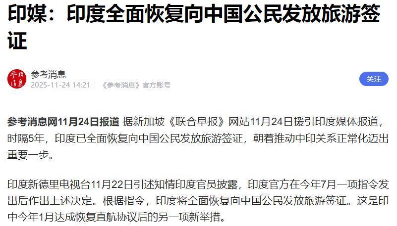 印度对中国释放重要信号,这是想要抢日本人的生意? 就在11月22日,印度媒体放出消息,说官方早在今年7月就发了指令,要全面恢复给中国公民发旅游签证,而早在今年1月,中印副外长级对话就已经敲定恢复直航航班,现在算是把人员往来的另一道关卡也打开了。 要说这时机选得也真够巧的,正好赶上日本旅游业有点“自顾不暇”。前段时间高市早苗那番不当言论一出来,中国游客赴日的热情明显降温。 南方都市报刚出的数据显示,11月中旬赴日航班客座率环比下滑了12.3个百分点,旅客量也降了10.8%。中国可是日本最大的客源国,今年前9个月就有748.7万中国游客去日本,占了外国游客总量的四分之一,这么一算,游客减少直接让日本少赚不少钱。 而这边日本还没缓过劲来,印度就递上了橄榄枝,这不就是明摆着说“日本不欢迎,来我们这儿啊”? 其实从外交角度看,和印度搞好关系确实没毛病,毕竟朋友多了路好走。但话又说回来,印度想招揽中国游客,还得先把自己的“基本功”练扎实。 别的不说,安全问题就绕不开。印度国家犯罪记录局的数据显示,2023年全国记录在案的强奸案就有31516起,平均每天超86起,美国、英国这些国家都常年提醒公民赴印要提高警惕,尤其让女性别单独出行。 除了安全,基础设施也跟不上趟,新德里机场T3航站楼连中文服务都没有,孟买的火车站电子屏只有印地语和英语,中国游客去了连路牌都看不懂。更让人不舒服的是,不少景点还搞“双标”收费,外国游客掏的钱是本地人三倍,这谁能乐意? 看看印度驻华大使馆微博下面的评论就知道,中国网友大多不买账,“谁敢去啊”“给钱都不去”的声音占了多数。有业内人士说得实在,不把卫生条件和安全保障提上去,印度旅游业想要搞大就是在异想天开。 印度要是真有诚意,与其急着喊话跟日本抢生意,不如先踏踏实实改善旅游环境,把中文标识、移动支付、安全巡逻这些细节做到位。不然就算签证放开,游客们怕是也只敢远观,不敢亲身试水。 毕竟出门旅游图的是开心和安全,谁也不想花钱买糟心不是?
