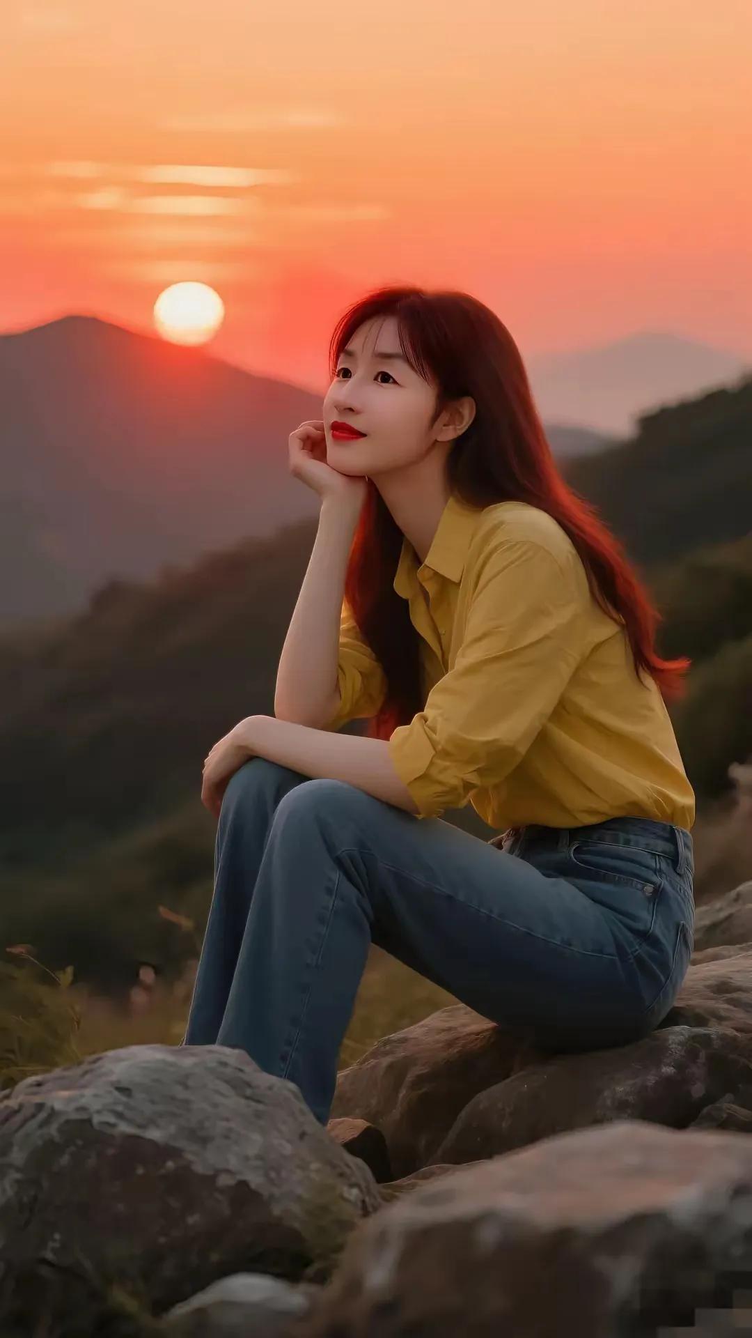 半壁青山衔落日 一条绿水载帆船。 横批:《落日与帆船》