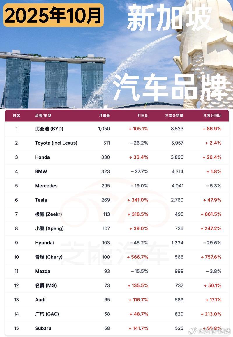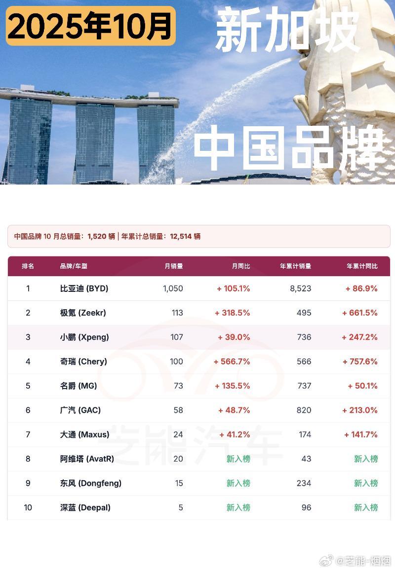 新加坡与巴基斯坦车市 10 月均呈增长,但格局大不同。新加坡电动化势头迅猛,比亚迪等中国品牌表现亮眼,逐渐拉开与传统日系品牌的差距,多个中国品牌销量高速增长。巴基斯坦仍以油车为主,日系品牌牢牢占据主导,中国品牌则稳步扩大市场存在感,两个市场呈现不同发展特征~