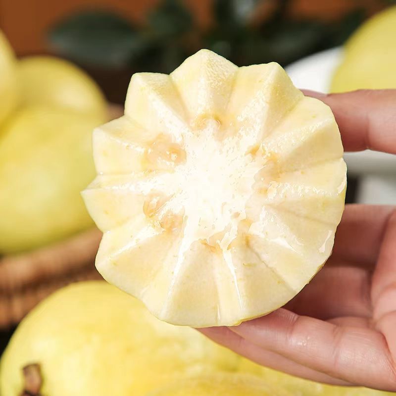 这个芭乐终于又上线了,口味清甜香气浓郁,口感软糯似奶油丝滑似冰淇淋,又被广大网友称为冰淇淋芭乐。未见其果,先闻其香,当你全面了解它之后,一定会让你爱不释手。对半切开,奶油白袭来, 每咬一口都沦陷其中,清新怡人的香味,软糯香甜的口感,就像上好的丝绸一般,滑过喉咙的舒适感十分享受,细腻的果肉在嘴里细细消融,甜得清新却不寡淡,浅浅的萦绕鼻尖,让人上瘾。比起苹果,芭乐所含有的脂肪更少38%、卡路里更少42%,口感还能更为浓郁丰富,为此好多明星超模用它来代餐~除了热量低适合当代餐水果,1个芭乐=8个橙子的维C,维生素更是苹果的40倍。每天享用晚餐后,切几个新鲜上市的芭乐,让全家人润润肠道解解腻,补充满满VC吧。