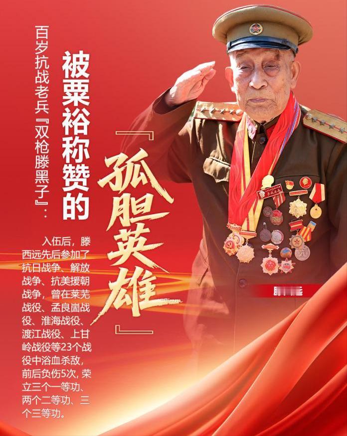 1996年,滕西远私藏两支手枪,民警让他上交,可他却说:“这两支枪,一支是粟裕大将给我的,一支是开国中将给我的,你们要哪支?” 滕西远,1925年生于山东莱芜,其自幼命运多舛,父母双亡,兄弟五人于兵荒马乱之境中艰难维生,在动荡岁月里苦苦挣扎,饱经生活的磨难。 13岁那年,他毅然加入八路军游击队,开启了他的戎马生涯,因为他长得黑,战友们都亲切地叫他“滕黑子”。 1940年,日军对莱芜抗日根据地发起围剿,滕西远与两名战友外出执行任务时遭遇日军埋伏,躲进附近村庄。 在躲藏过程中,他们遇到一个落单的日本兵,滕西远躲在猪棚上,看准时机从高处一跃而下,将鬼子扑倒,在战友协助下将其制服。 同年,在杨家横战斗中,滕西远展现了出色的战斗智慧,他注意到日军旗手的目标显眼,心想干掉旗手能挫敌锐气,他瞄准目标,一枪放倒日军旗手,随后迅速隐蔽,继续瞄准下一个。 战斗进入白热化阶段,子弹打光后只能肉搏,一名鬼子挥舞东洋刀冲向滕西远,一刀刺穿他的腋下,滕西远忍着剧痛,挺身向前,猛地将刺刀刺向鬼子心口,成功反杀。 这场战斗结束后,滕西远因表现突出荣立一等功,廖容标司令员亲自奖励他一把驳壳枪,并在表彰大会上当众称赞:“好你个滕黑子,干得漂亮。”这年,他年仅15岁。 抗日战争胜利后,滕西远担任华东野战军七纵队某部炮兵连连长,解放战争期间,他再次展现了非凡的勇气和智慧。 一天,他带一名战士前去查哨,发现大约200名敌人正悄悄逼近,当时他们只有三人(包括哨兵),装备也只有三颗手榴弹、一支步枪和一支手枪。 面对敌众我寡的危急局面,滕西远镇定自若,他往靠近的敌人扔了一颗手榴弹,同时鸣枪示警。,随即向敌人大喊:“你们被包围了,缴枪不杀,解放军优待俘虏!” 这番虚张声势的“空城计”果然奏效,敌人不敢轻举妄动,误以为陷入埋伏圈,等到他们反应过来时,我军大部队已经赶到,将他们团团包围。 这场兵不血刃的战斗让滕西远再次荣立一等功,粟裕将军称赞他是“孤胆英雄”,并亲手奖励他第二把驳壳枪,从此,“双枪滕黑子”的名号响彻战场。 新中国成立后,滕西远又加入了中国人民志愿军,奔赴朝鲜战场,1953年,在马坪里地区作战时,他所在的部队遭遇敌军坦克挡路。 这是一条窄路,绕道会耽误作战时间,影响任务完成,滕西远主动请缨,毅然决定独自前去炸坦克,出发前夕,他神情凝重地嘱托身旁战友:“倘若我在此次行动中不幸殒命,烦请帮我向家中传递一声消息。” 凭借丰富的战斗经验和灵活的身手,他成功将炸药包引爆,摧毁了敌军坦克。 他凭借英勇表现荣膺志愿军爆破英雄之誉,彭德怀听闻后,不禁赞道:“滕黑子既能胜任指战员之责,亦能当好战斗员冲锋陷阵。” 朝鲜战争结束后,滕西远选择复员,他先后在北京、河南任职,1963年转业回到老家莱芜,从此,他在基层岗位上默默工作,经常教育子女要艰苦朴素,珍惜来之不易的和平。 在莱芜任职时,他曾先后出任莱芜县口镇公社、苗山公社财贸书记,还在莱芜县基建局等多岗位履职。1990年10月自莱芜市政公司离休后,他仍未安于闲适,脚步依旧前行。 离休后,滕西远被莱芜区委聘为红色宣讲员,先后参加各类主题宣讲活动100余场,他多次进军营、进校园、进机关,讲述自己的峥嵘岁月。 而滕西远家中珍藏的两把驳壳枪,对他而言不仅是武器,更是用生命和鲜血换来的“功勋章”。 他定期拿出来仔细擦拭、上油,仿佛在与老战友进行跨越时空的对话。 2015年,适逢中国人民抗日战争暨世界反法西斯战争胜利70周年,滕西远怀着赤诚之心,将两把钟爱的驳壳枪慷慨捐赠给莱芜当地的革命纪念馆,为那段峥嵘岁月留存珍贵见证。 他希望子孙后代看到这些革命文物,能懂得先辈们的努力与牺牲,珍惜今天的幸福生活。 回顾滕西远的传奇人生,从1938年参军到抗美援朝结束,他经历了抗日战争、解放战争和抗美援朝战争,参加了包括莱芜战役、孟良崮战役、淮海战役、渡江战役、上甘岭战役等23个战役,前后负伤5次,荣立三次一等功、两次二等功、三次三等功。 但面对这些荣誉,他总是轻描淡写:“好多战友都牺牲了,我能活下来很不容易,相比于他们,我所做的不算什么。” 1996年那场“收枪风波”背后,反映的不仅是个人与法规的冲突,更是两种历史认知的碰撞。 从战火纷飞到和平年代,从功勋武器到违禁物品,两把驳壳枪的命运见证了整个国家的变迁。 滕西远的故事,是中国近代史的微观缩影,他13岁参军,亲身经历了中国从积贫积弱到站起来的全过程。 在他身上,我们能看到那一代人的集体肖像——他们为了民族独立和国家富强,不惜牺牲个人一切。 如今,百岁高龄的滕西远在家中小院种菜、看报、写字,过着平静的生活,但那段烽火岁月,永远铭刻在他的记忆里,也应当铭刻在每个中国人的集体记忆中。