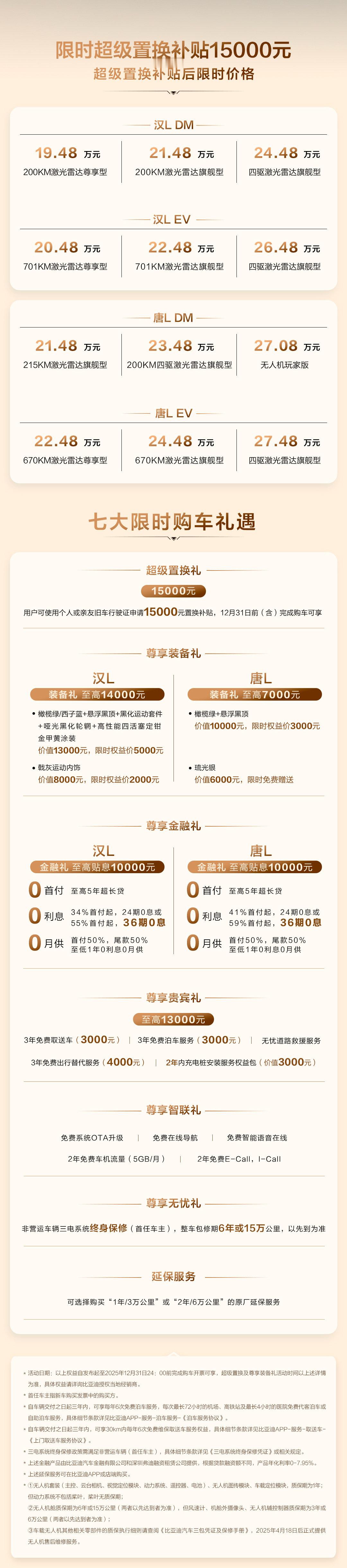 这次比亚迪汉L和唐L把诚意拉满了,19.48万起的补贴后售价,再加上