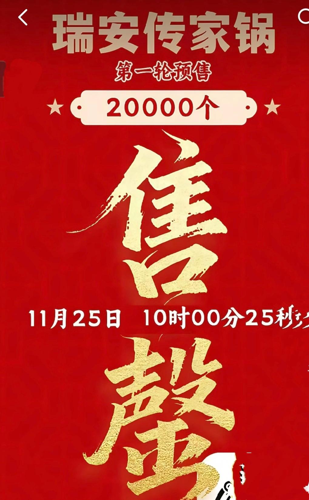 谁懂啊![捂脸]瑞安不锈钢传家锅 20000件25秒售罄,售价99元! 你抢到了吗❓️ 一开始我就说这锅要大卖, 预约人数10万 再来20000万个也照样秒🈳! 我还没反应过来 就没货了[捂脸] 这次的99元是无盖款,直径30厘米 这次抢到的用户来自五湖四海 甚至出现溢价倒卖的[灵光一闪] 老板傅克萍此刻不知道是什么心情 来不及开心 赶紧加班加点生产吧![思考]