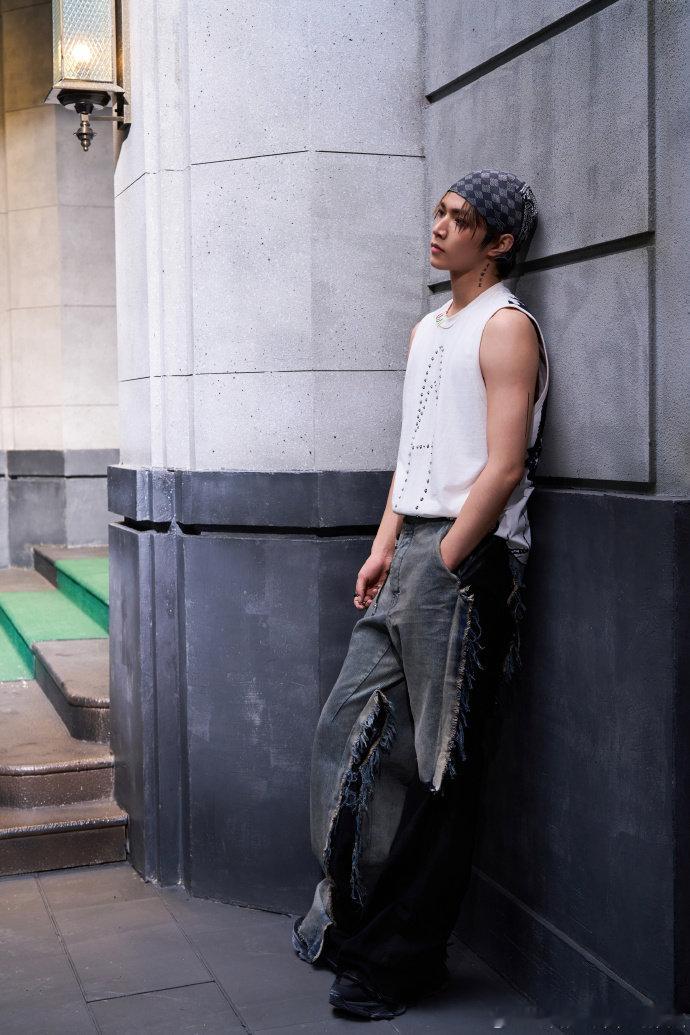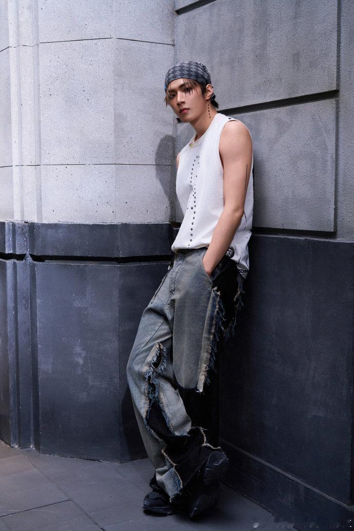 刘耀文无袖背心头巾造型!潮男一枚!
