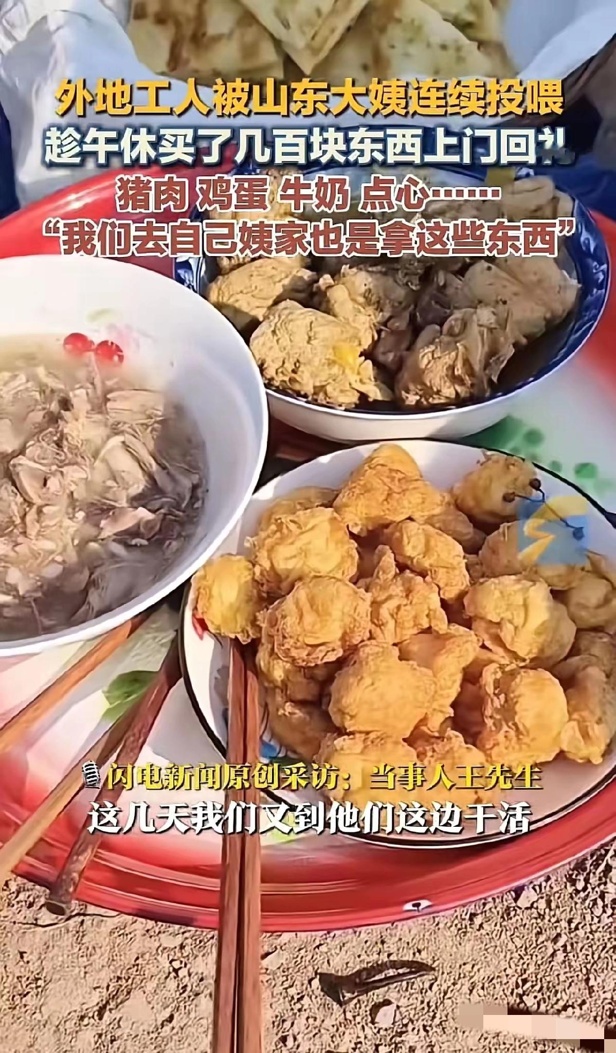 “这个山东大妈火到央视新闻!”山东,12位河南籍工人在这里施工安装风电项目,当地一个大妈看到他们吃的很差,连续多日免费为12位河南籍工人送饭送水! 工人们记着这份暖,工程结束就按老家走亲戚的规格,提着重礼上门谢恩,一口一个“您就是我们亲姨”。 没有刻意煽情,却藏着最珍贵的真相:善良从不是单向付出,而是你真心待我,我必加倍回馈。 孔孟之乡的教养,河南人的知恩图报,让跨省情谊暖到人心底。 这世上最珍贵的,从来都是不掺杂质的善意和懂得感恩的真心。 你经历过这种双向奔赴的温暖吗?来评论区说说~