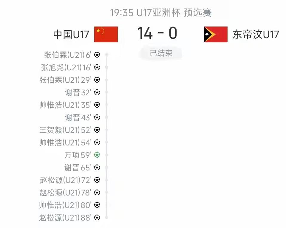 中国足球未来可期!一个14-0打出了中国足球的希望,这不是一场普通的比赛,这是中国足球未来的希望,虽然现在还是U17国字号小将,但是这支队伍里的球员,快则三五年,慢则七八年就将是成年国足的主力球员,所以U17小将们精彩的表现就是中国足球未来的希望。