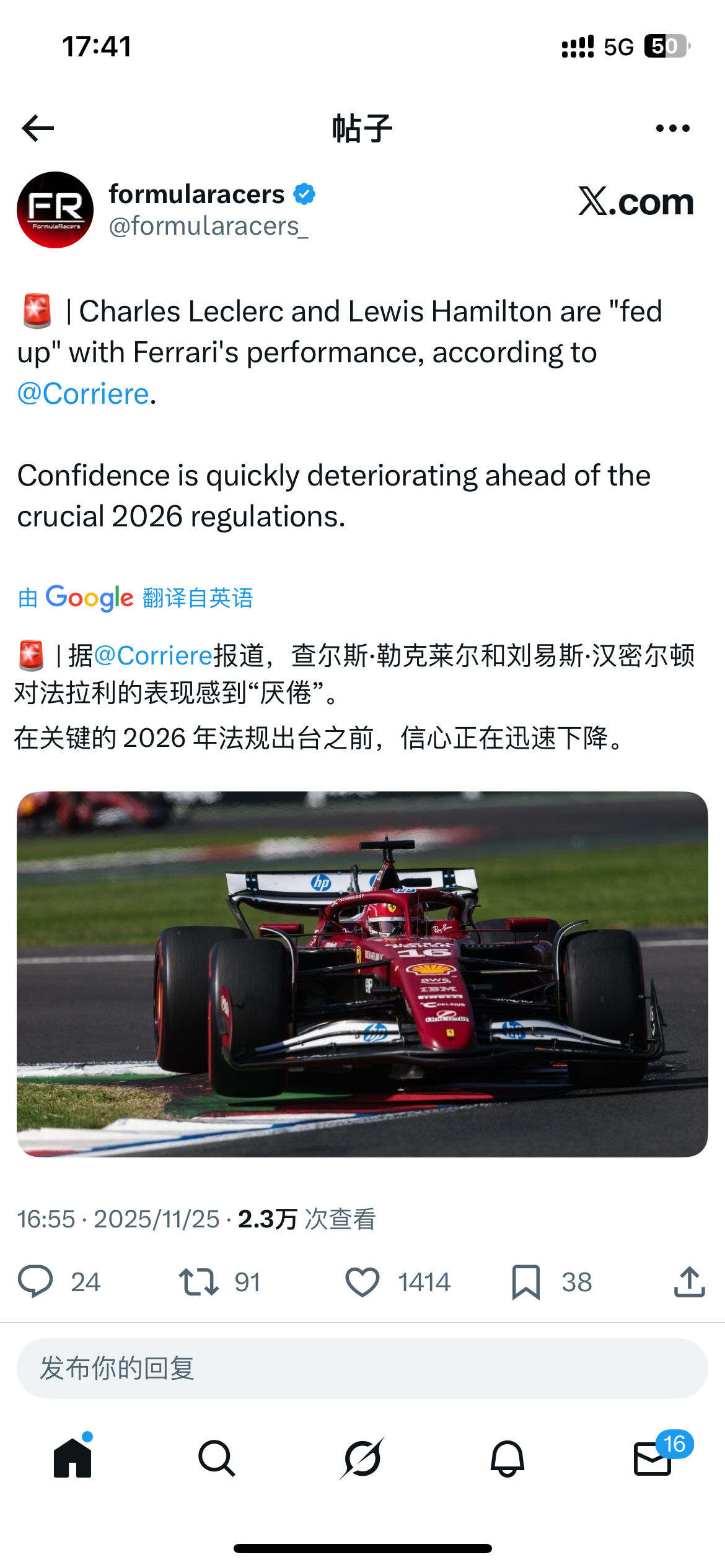 据意大利《晚邮报》报道:勒克莱尔和汉密尔顿对法拉利的表现感到“厌倦”。在关键的 2026 年法规出台之前,信心正在迅速下降。