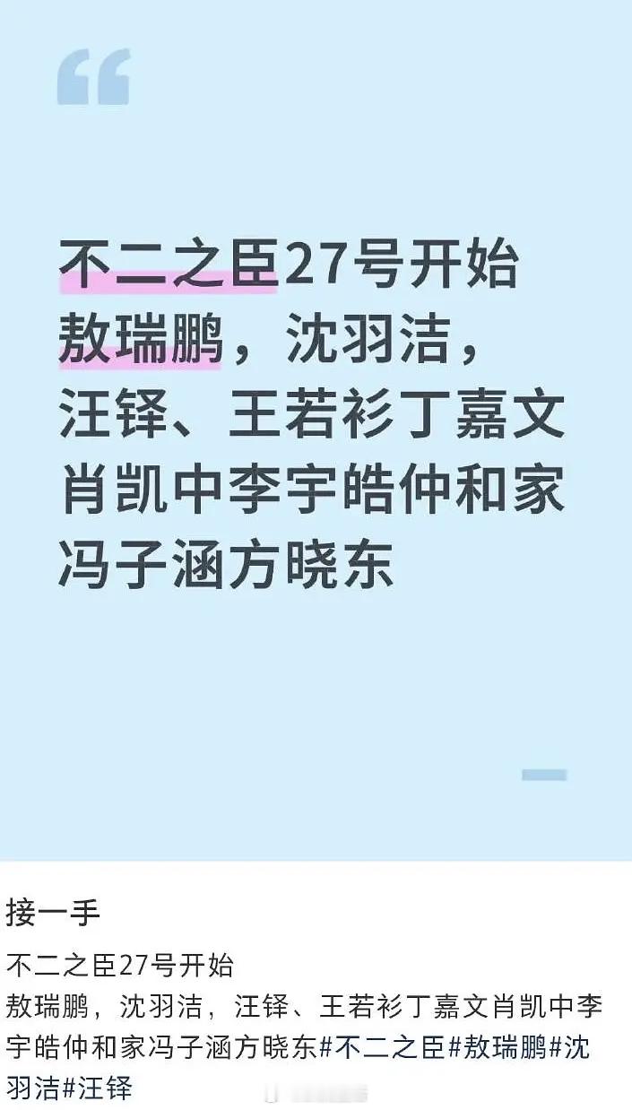 敖瑞鹏新剧不二之臣阵容🍉来啦,看着不错诶。