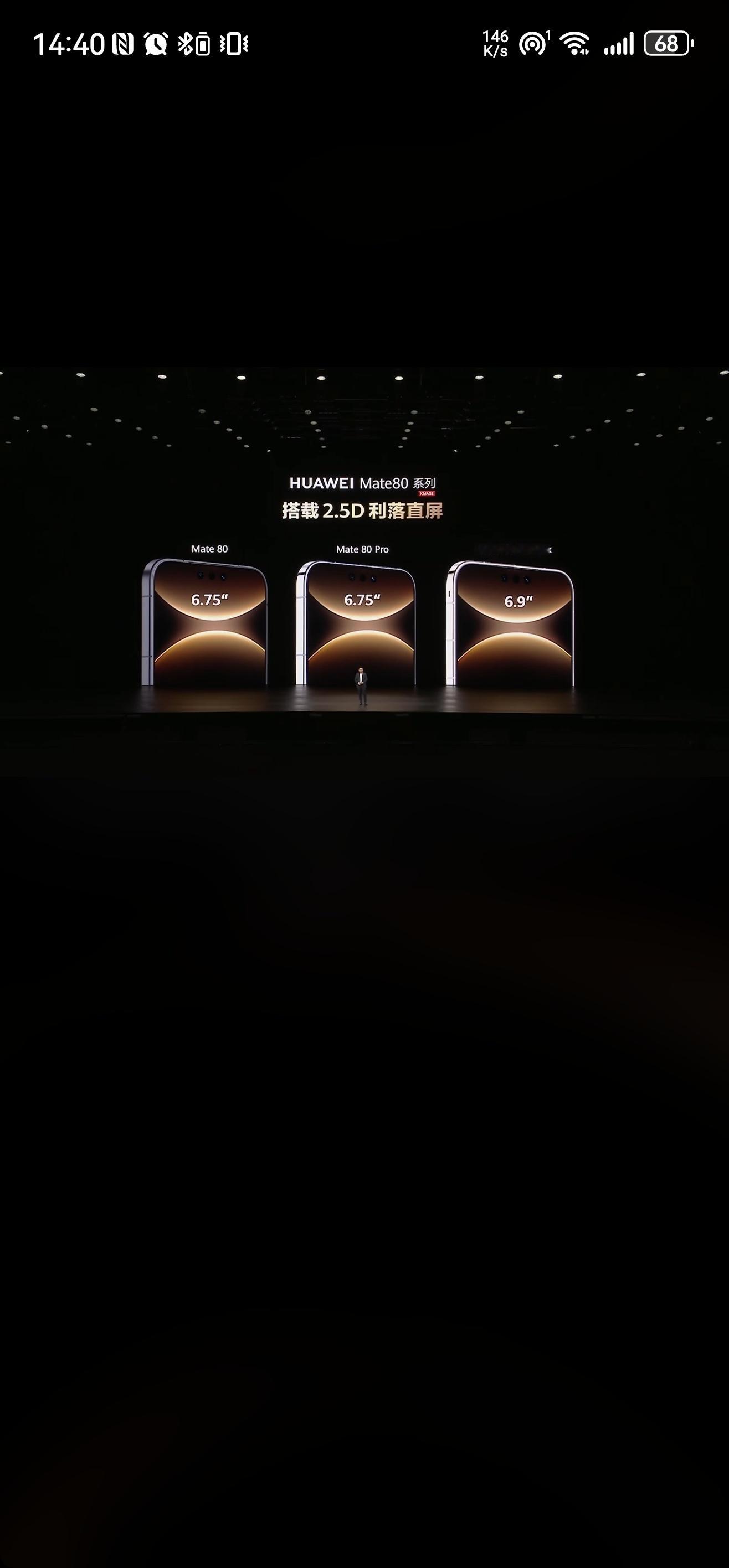 Mate80 &Pro 屏幕同为6.75英寸,Pro Max独享6.9英寸。全系3D TOF人脸识别,这个好评。
