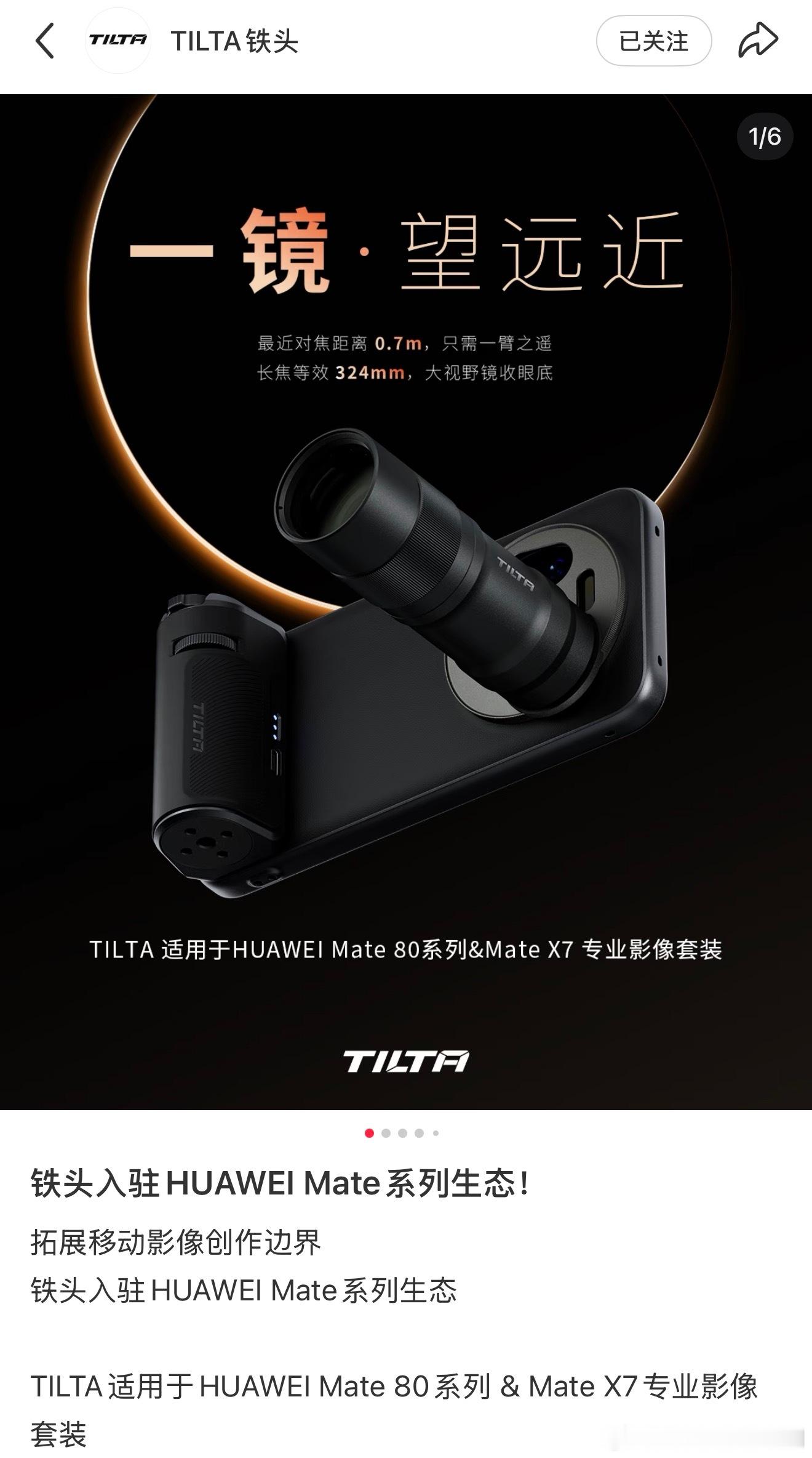 铁头为华为Mate 80系列和Mate X7做的影像套装不错!这次折叠屏X7也有了,好事啊!X7本身影像就强,配上影像套装,长焦更好了!到时候入手一套!