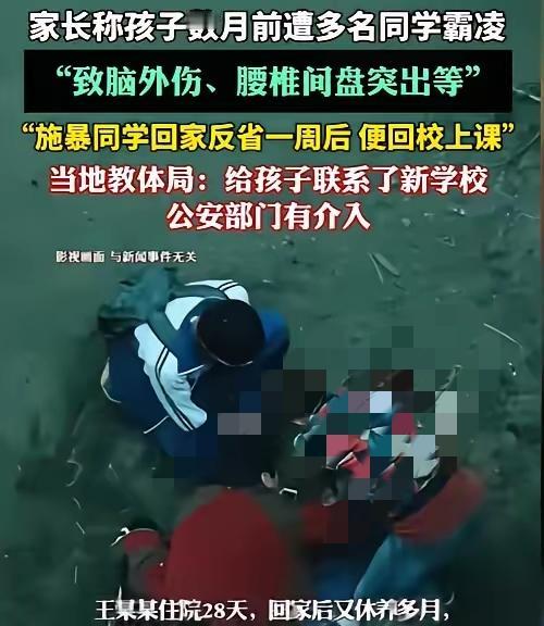 16岁少年一句“别打了”,换来的却是浑身是伤、不敢出门的结局,这事真的让人越想越堵得慌! 那天榆林的王同学看见同桌被围堵,没多想就上前劝架,谁能料到几天后,那群人带着更多人找上门,把他往死里打。拳头、脚踢全往身上招呼,还有人拿手机拍,仿佛施暴是件多光彩的事。 住院28天,脑外伤、腰椎间盘突出跟着他,出院后不敢关灯睡觉,邻居家狗叫都能吓得抱头蹲下。可施暴者呢?反省一周就返校,医药费没赔,道歉也轻飘飘。 最讽刺的是,勇敢的孩子被迫转学难,施暴的却毫发无损。这不是在寒好人的心吗?校园该是保护孩子的地方,不是让善良者受欺负、施暴者逍遥法外的地方。 如果连挺身而出的勇气都要被打压,以后谁还敢站出来?你觉得该怎么让施暴者付出应有的代价,又该如何保护勇敢的孩子?