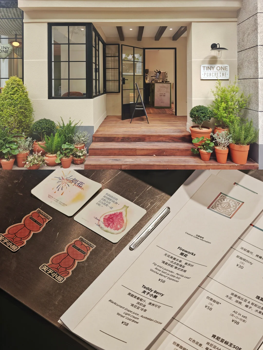 🎈在梧桐区相对低调的进贤路,也是我经常溜达的一条街,酒吧居多,今天路过,意外撞见Punchline的新店开幕,位置是在TINY ONE童装店的外侧,自带一个大院子。今日天气正好,不冷不热,特别合适合喝个下午茶,刚好室内窗边的位置空出来就来了一套新品尝鲜。