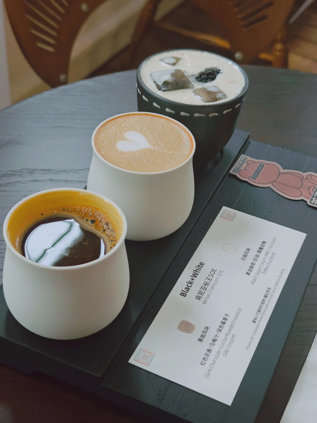 🎈点了🐻小熊Teddy Berry的白加黑set,使用的是肯尼亚标王SEO,black的酸度和之前喝过的比是比较适中的,水果香气中带点花香,white如同描述有些黑糖话梅的风味,还有一款特调特别惊艳,这款豆子和梅果➕冰博克的匹配度非常好;店里主推的还有一款🎆烟花set,用的是瑰夏拼配,下次再来尝试。