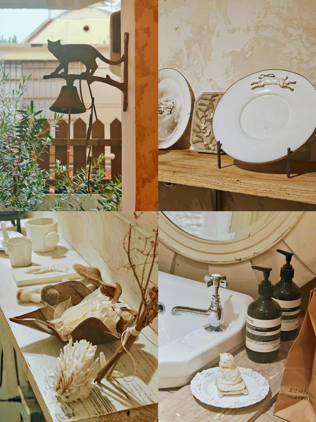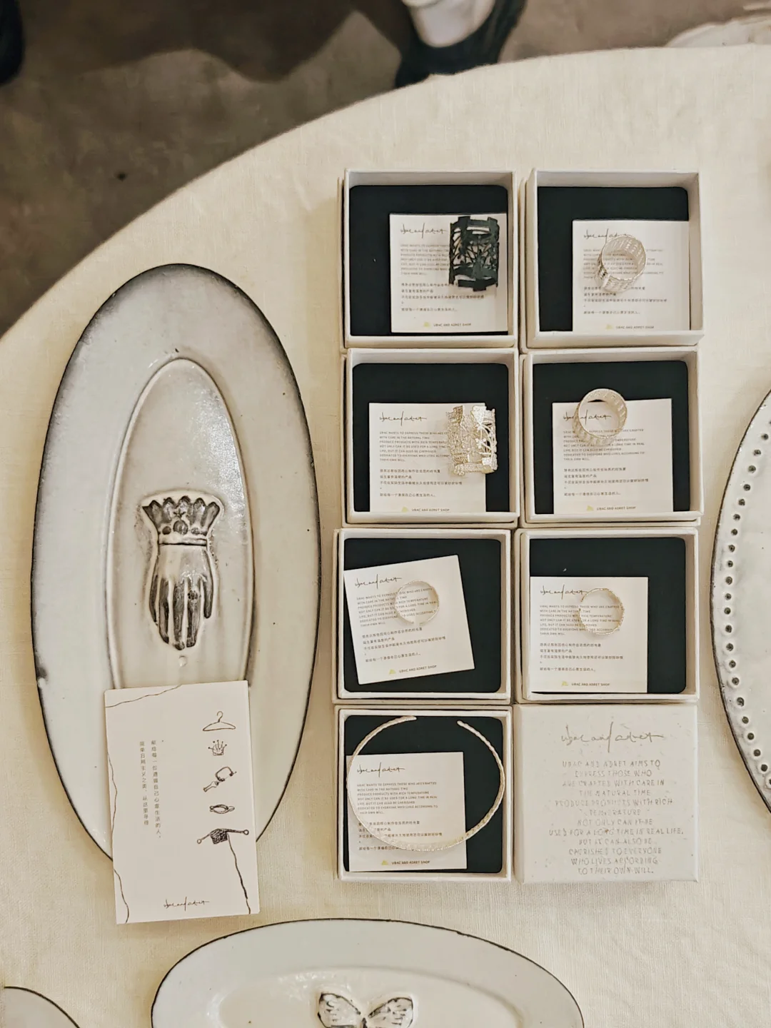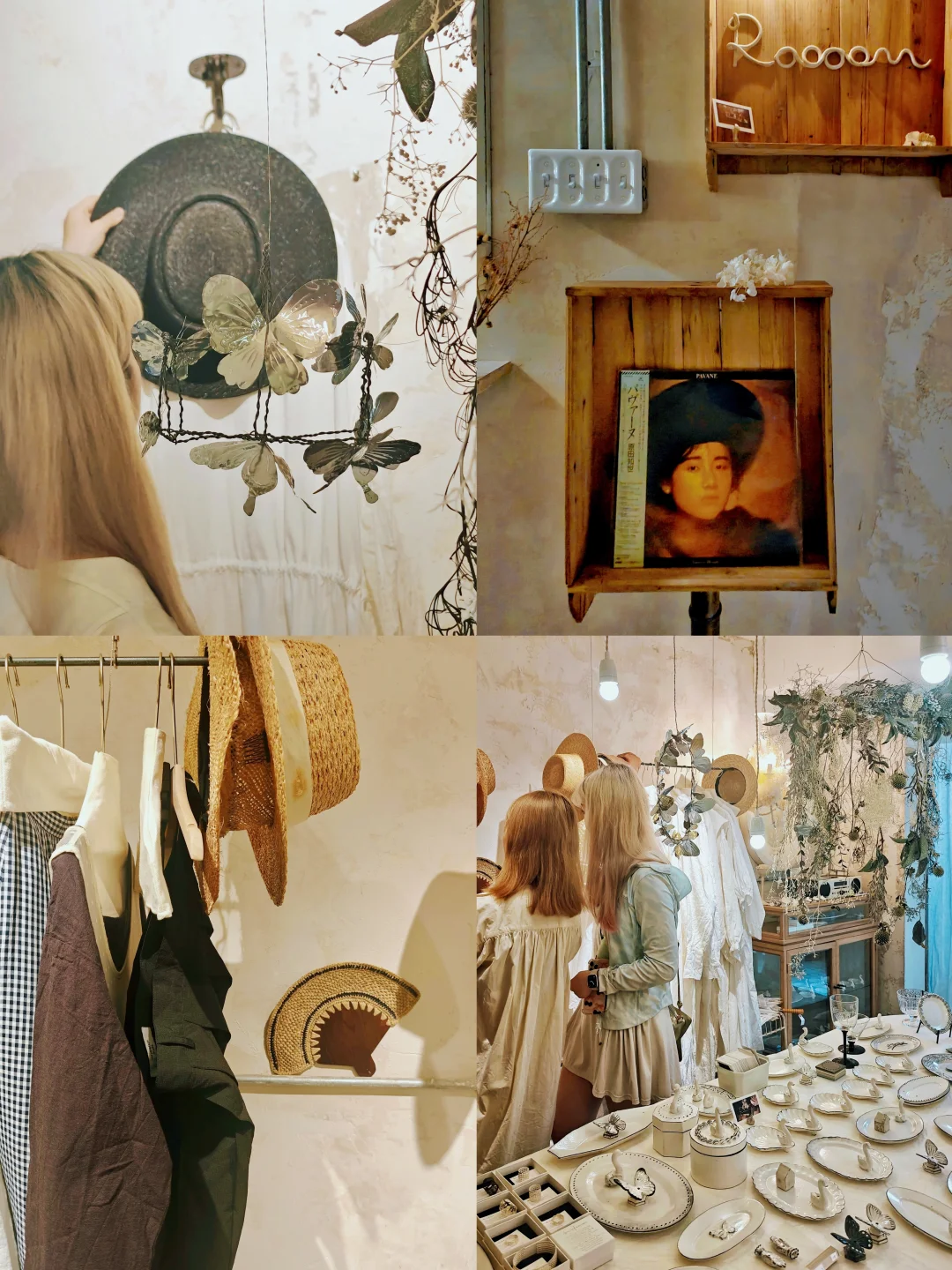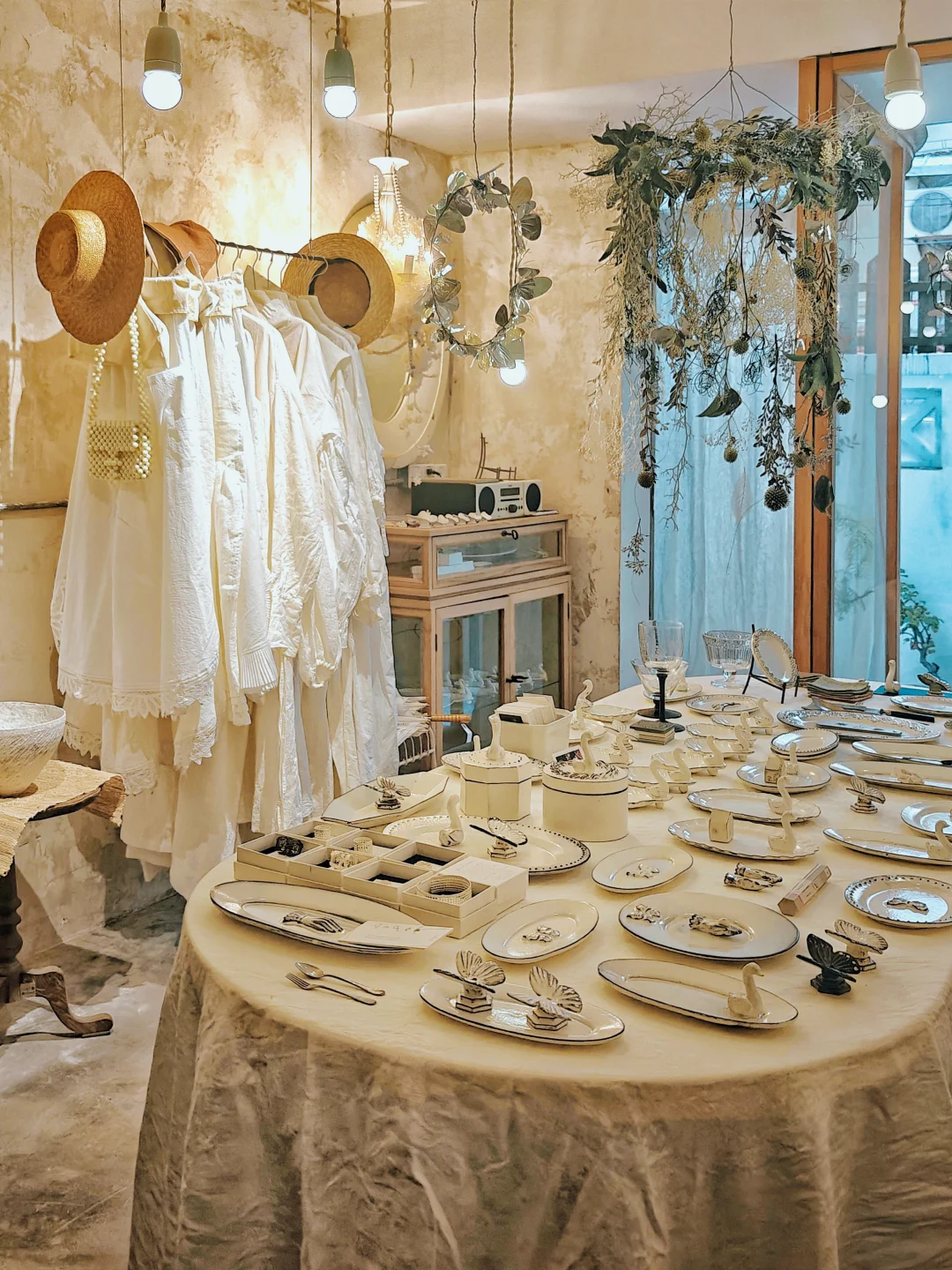 ??质朴又漂亮的白色系复古餐具、首饰、服饰,风格很统一,带着手作器特有的“拙”感,本来以为是买手店,原来大多是店主自己手作的,价格也还好,喜欢这一卦风格的很难不买买买。逛的时候同时有另外几组顾客,和店铺的风格也很搭,果然这种小众的店铺吸引的都是电波同频的客人呢。