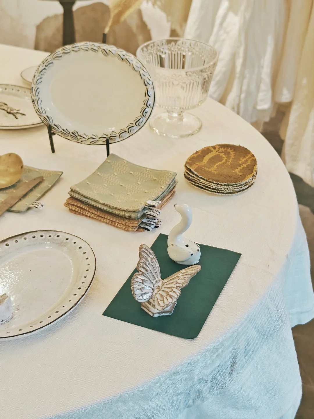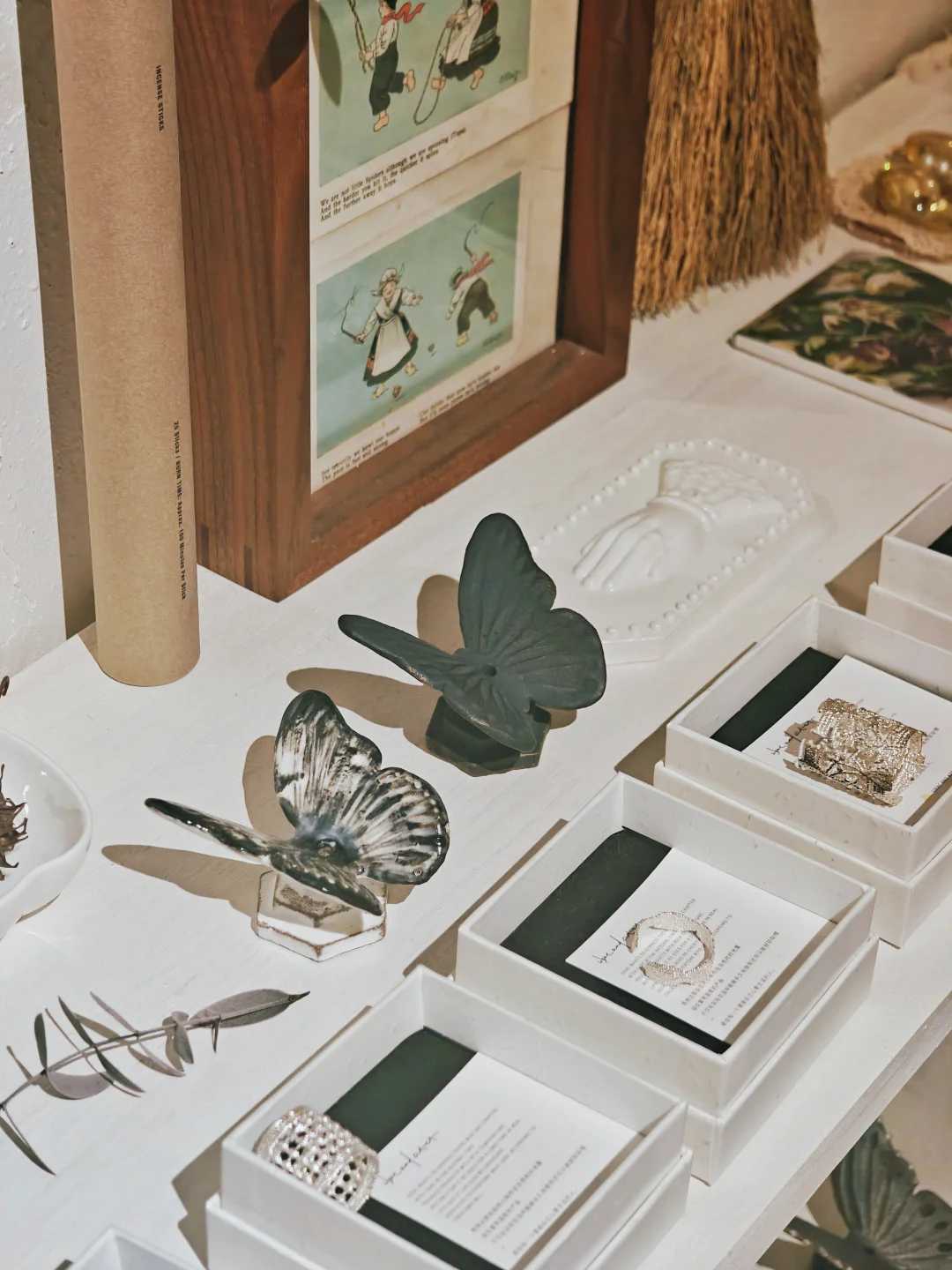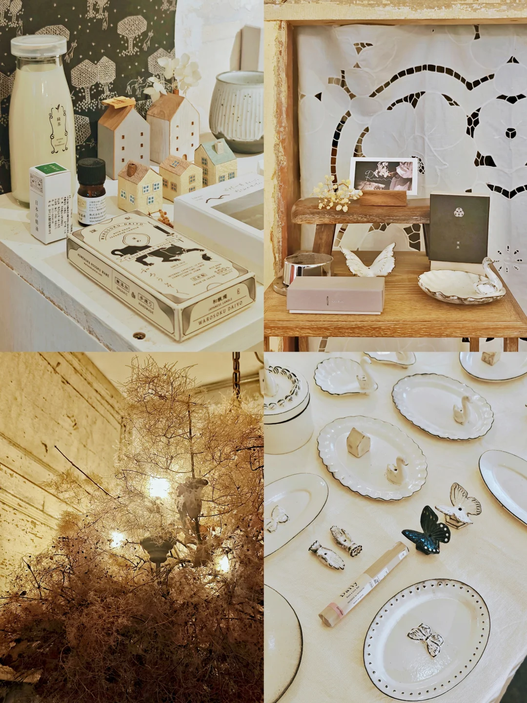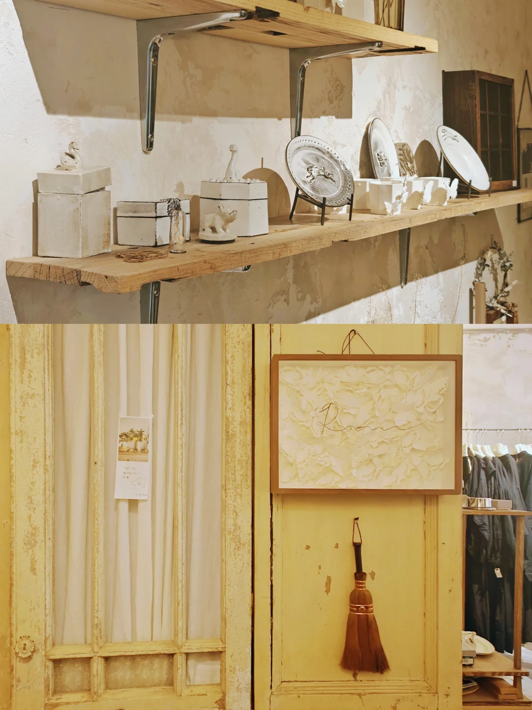 ??质朴又漂亮的白色系复古餐具、首饰、服饰,风格很统一,带着手作器特有的“拙”感,本来以为是买手店,原来大多是店主自己手作的,价格也还好,喜欢这一卦风格的很难不买买买。逛的时候同时有另外几组顾客,和店铺的风格也很搭,果然这种小众的店铺吸引的都是电波同频的客人呢。