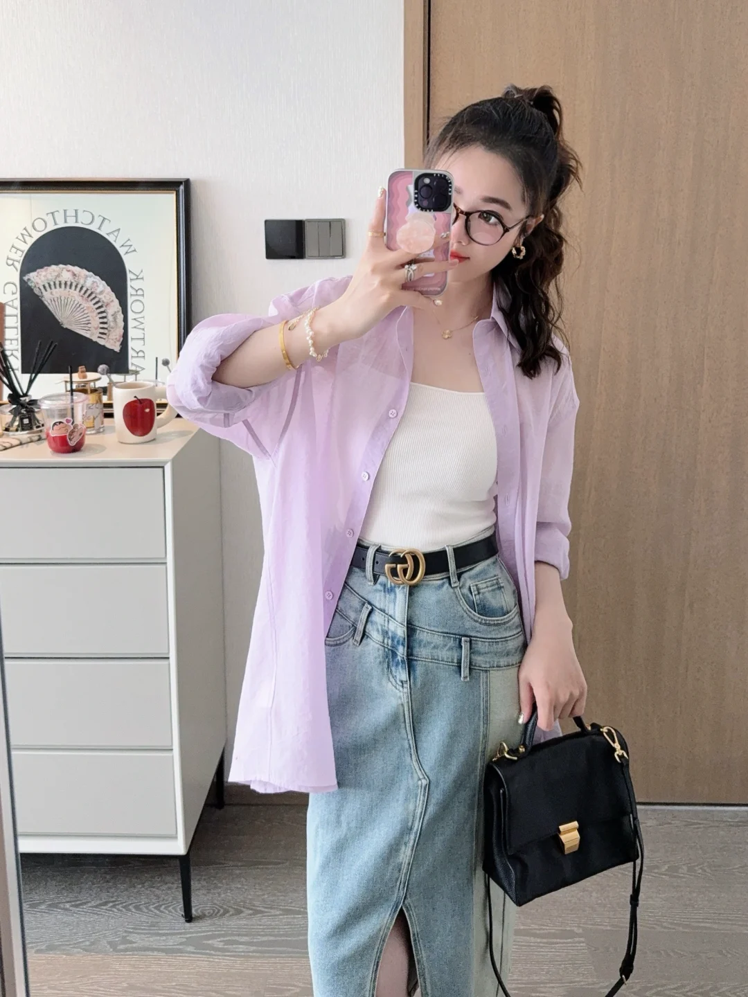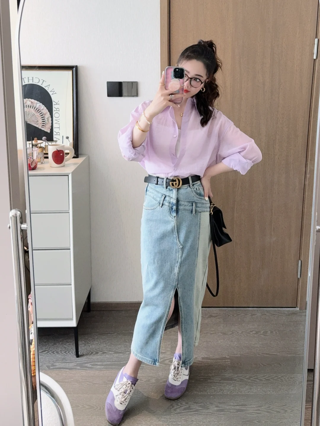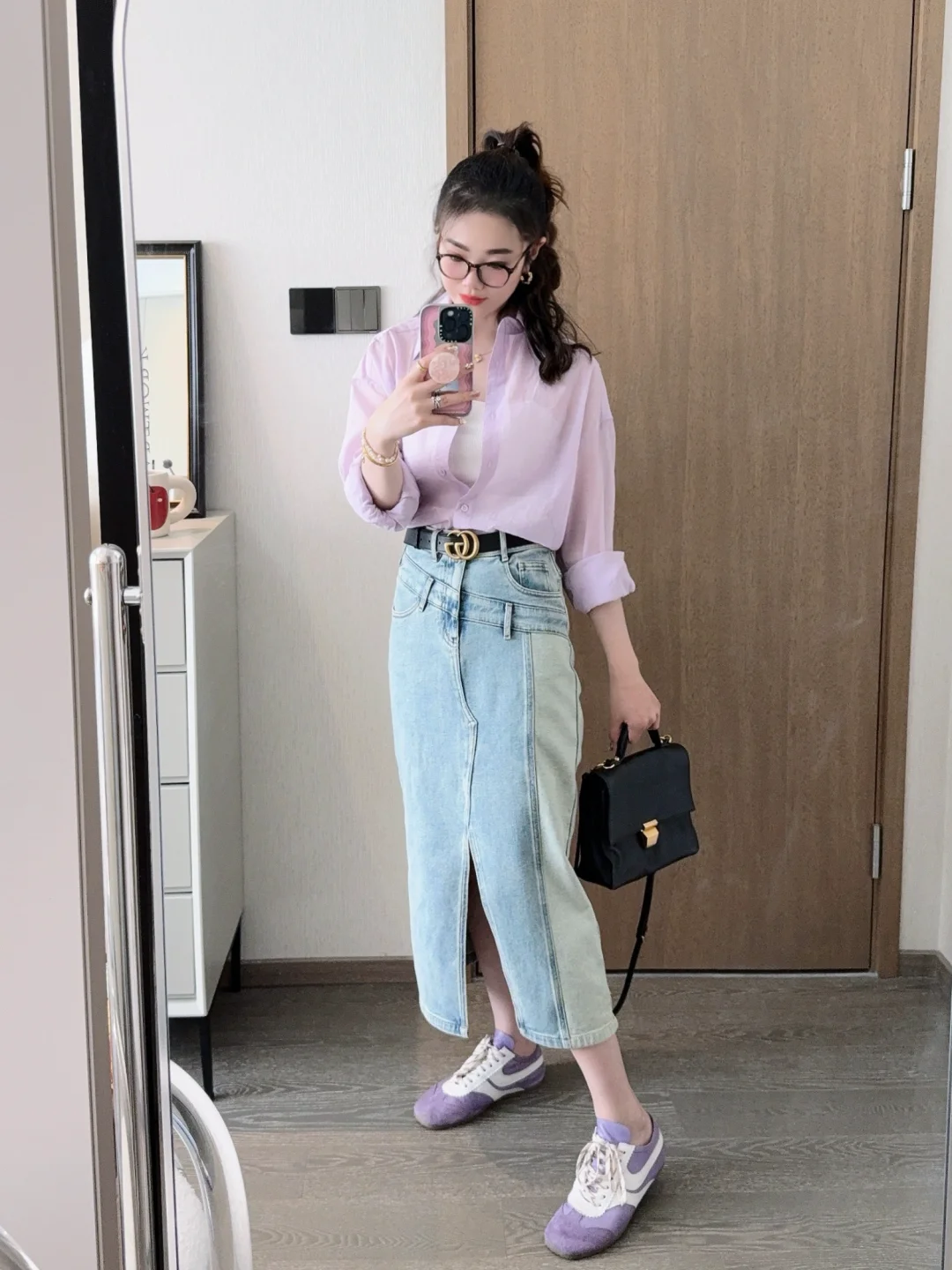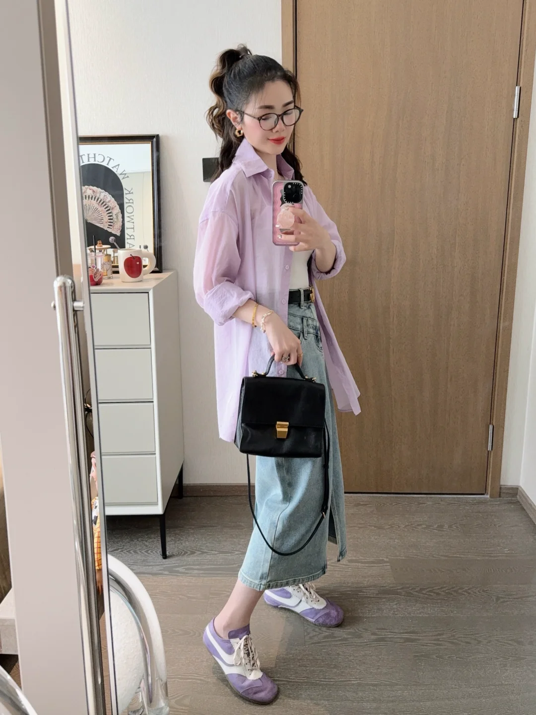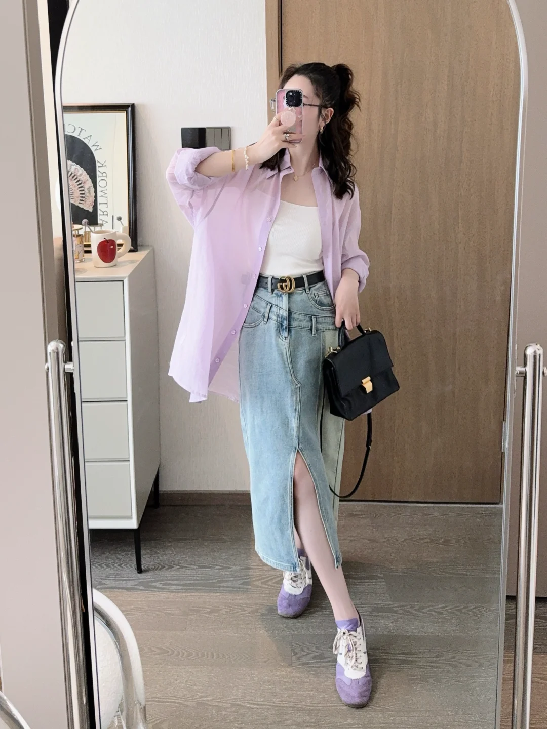 💜最近新挖掘的牛仔裙简直时髦爆炸啦!出去玩想舒舒服服的、又想穿裙子又不想拘束、选牛仔裙准没错!!💜对啦!天热以后,好多姐妹们来问我有木有找到漂亮的防晒外套,终于、我扒拉出了这件紫紫的薄防晒衬衫来搭,居然意外好看!!据说紫色旺我!那就宠它! 💜PS:可怜又本分的dǐng级牛马(我家属)、终于还是在假期最后一天在工作岗位上坚持到了这个时间! 🩶OK我絮叨完了!下班!粗发!肥老家找爸妈!😭 🩷我亲爱的宝宝姐妹们!祝你们假期愉快鸭~~~🎈