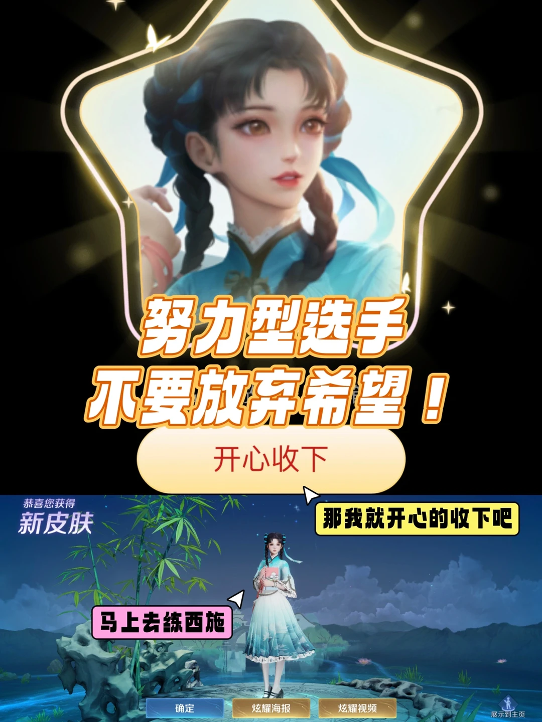努力是有用的❗️我终于拿到西施皮肤了‼️