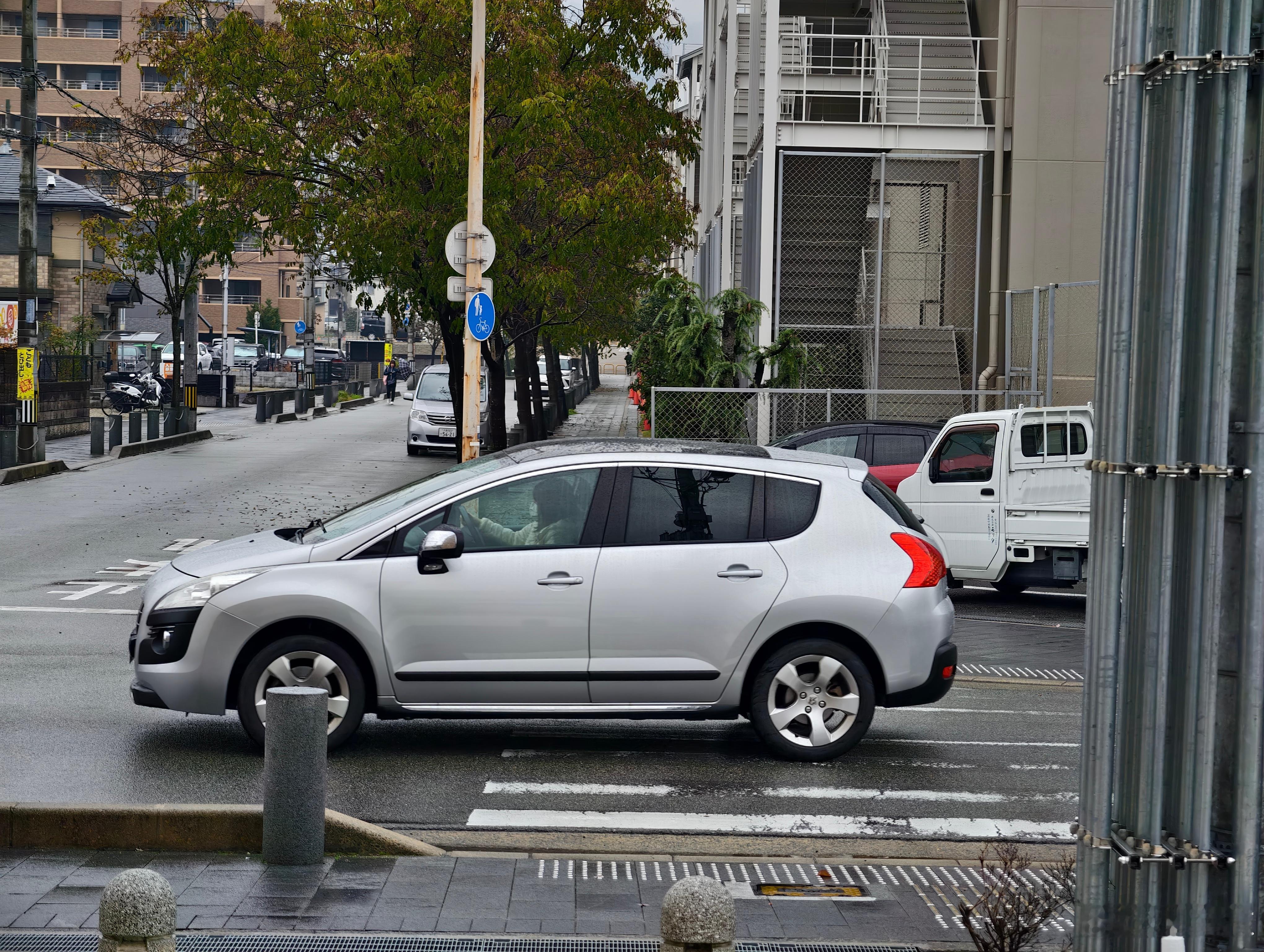 偶遇初代标致 3008,是最早的 pre-facelift 欧规前期款。胖胖的跨界比例、大嘴中网、厚实的腰线,瞬间穿越回 2010 年代法系车黄金时期。其实在 2010 年左右,初代 3008 曾以纯进口身份短暂进入国内,原汁原味地展现了 PSA 当年对都市跨界车的理解:坐姿高、车身厚,既有两厢车的灵巧,也有 SUV 的姿态与通过性。2013 年,东风标致开始国产 3008,在欧版中期改款的基础上进行了本土化改造,动力系统也从 1.6T 换成了老旧 2.0+6AT。到了 2016 年,欧洲迎来基于 EMP2 平台的第二代 3008,质感、科技、设计都跃升了一个世代。然而在国内,这次换代被拆成两条线:初代 3008 被保留下来接着卖,并在 facelift 基础上再做一次魔改;而全新的二代 3008 改名为 4008 后由东风国产。于是出现了大家喜闻乐见的名场面,3008 和 4008 新老同堂同台销售。对企业来说这样能最大化利用产能,但对消费者来说,定位与血统的界限反而变得更模糊了。也正因为如此,如今在日本街头看到一台初代欧规前期款 3008,未经历国内两轮魔改、保持原始设计理念的纯粹形态,反倒显得格外珍贵。