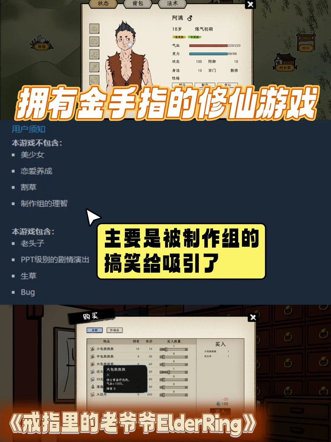 💬修仙类的游戏我真的好喜欢,但是我被吸引的点在于,它的制作中真的太有梗了!