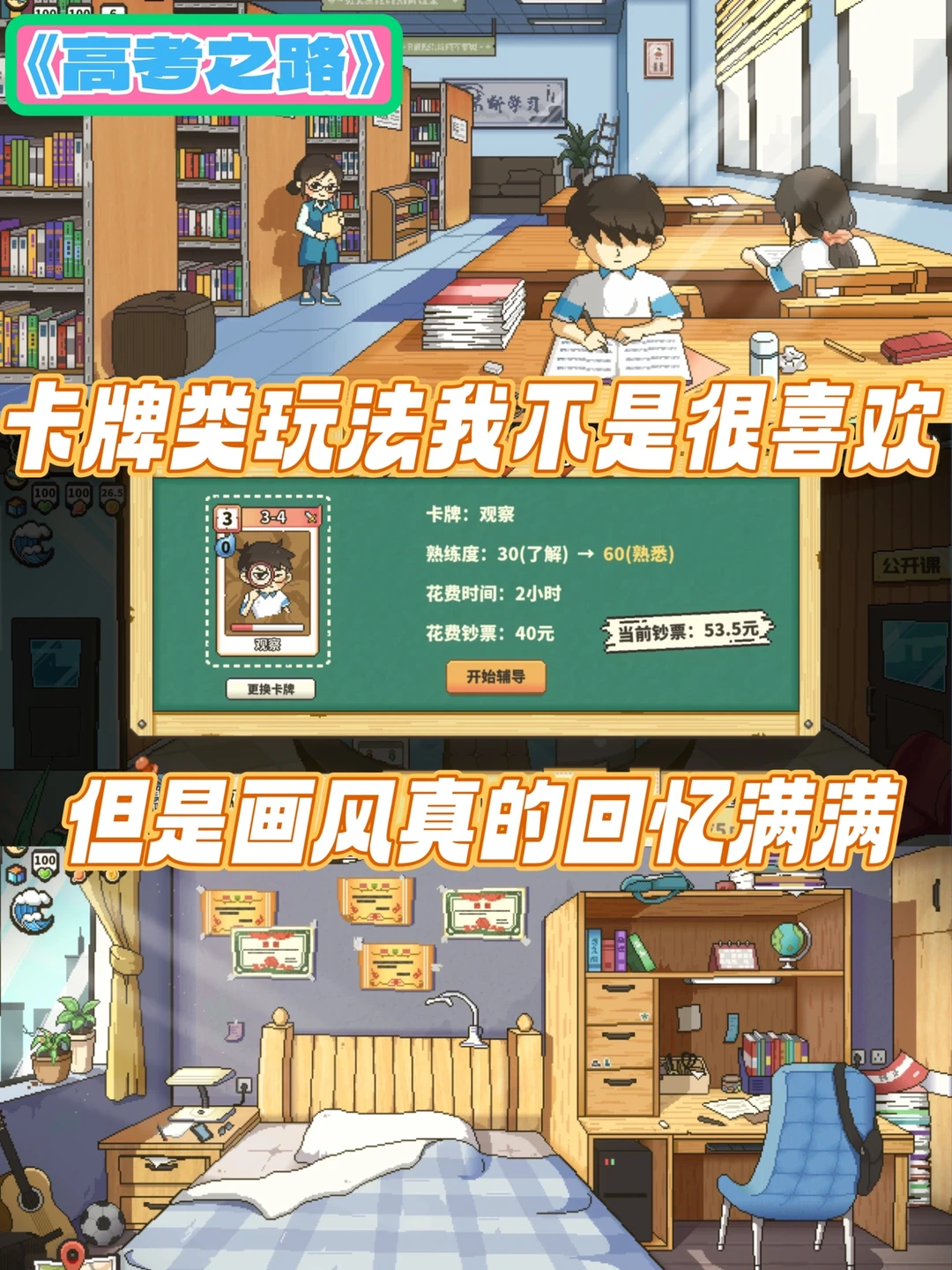 💬这个游戏的主要玩法是我不太喜欢的卡牌,但是画风我真的很吃!太有回忆感了。