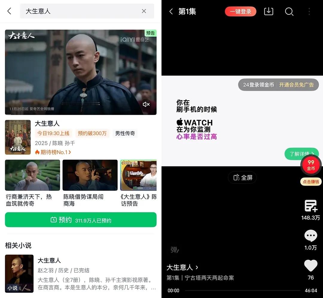 大生意人预约311w,开播首日在追人数148w🍑的在追人数,完全不是预约的人自动追剧,今天新剧《大生意人》开播,首日的在追人数是148万,可是预约将近312万了。同样,之前的《利剑玫瑰》🍑的预约人数83万,在追人数78万。