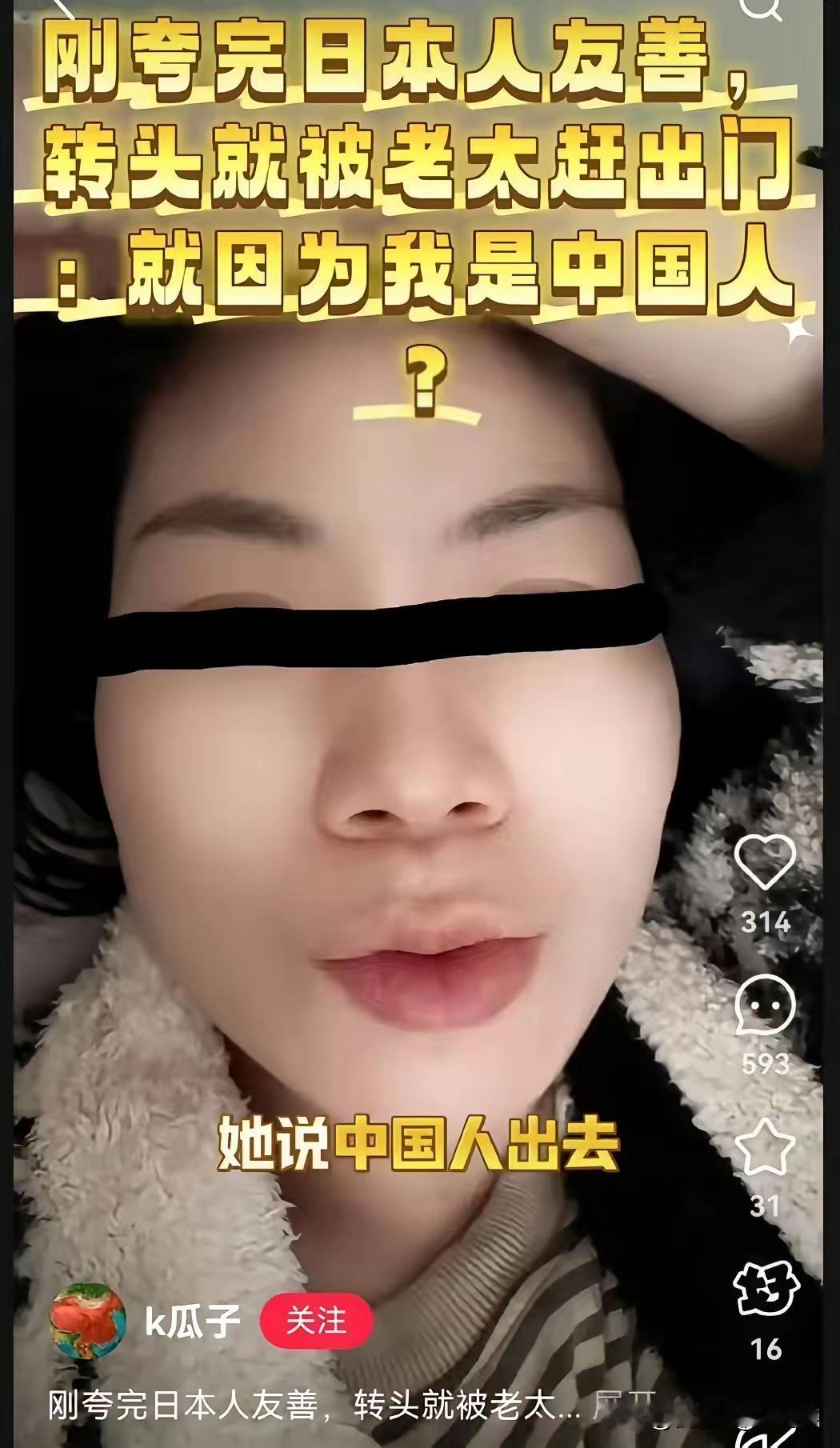 真是笑死我了,这位前往日本的美女刚刚夸完日本人特别的友善,日本人特别的乐于助人之类,转眼之间,她的房东日本人就要把她赶出去,就因为她是中国人。 现世报来的太快了! 这样的人,如果这样的人可气 ,可恨 ,可悲! 我想知道那些嫁到日本的中国人在日本是怎样的,特别是现在特殊时期!