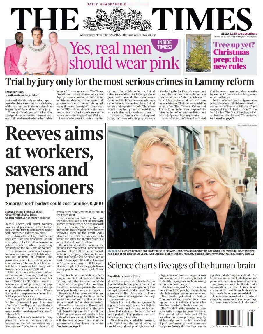 英国人的“好日子”到头了。 今天英国大多数报纸都以政府预算为头条——包括《泰晤士报》,该报称工人、储户和退休人员将承担英国财政大臣试图通过多项增税来平衡账目(英国政府赤字)的主要负担。