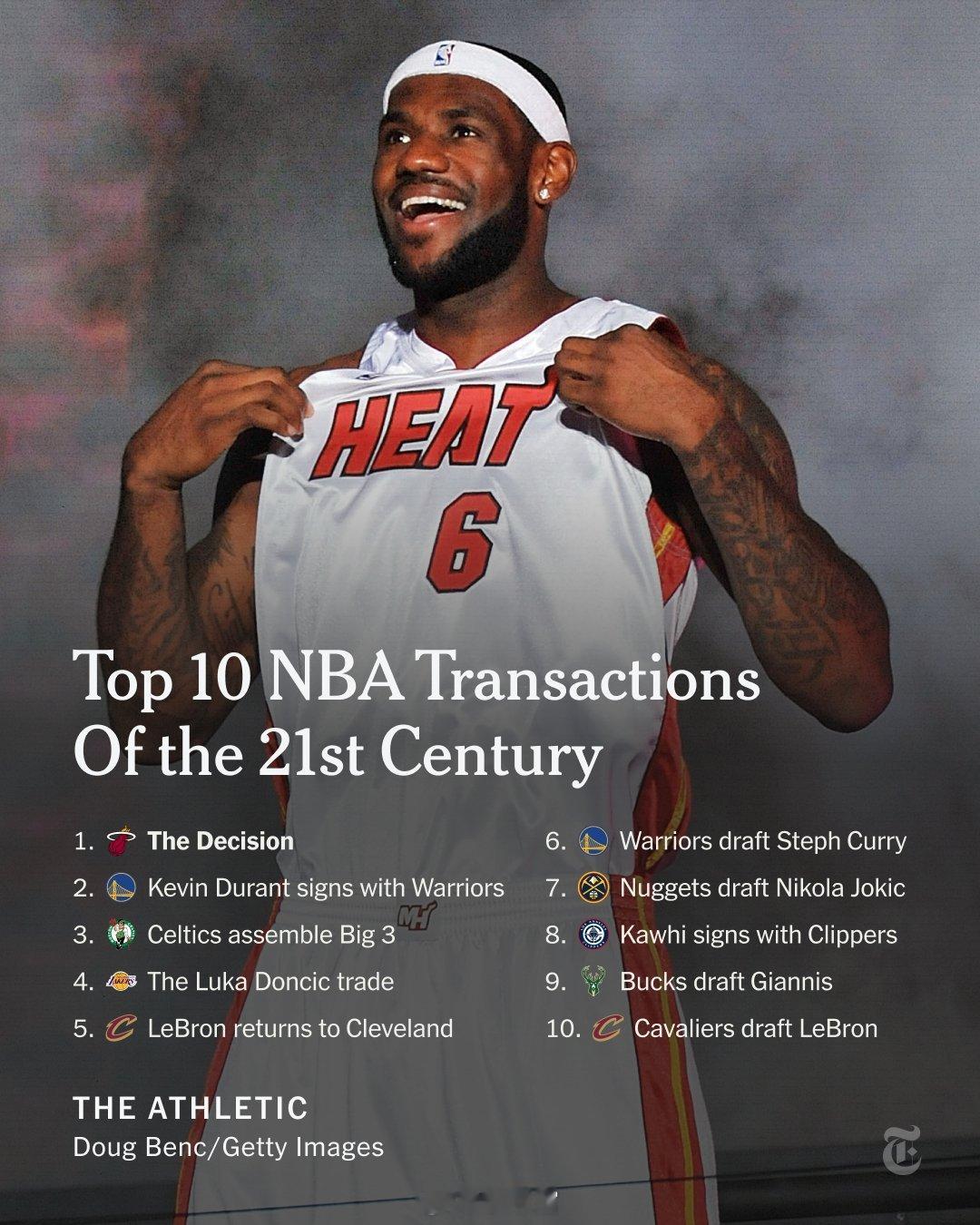 TA评选了本世纪最重要的十大手笔(包含选秀),詹姆斯独霸三席。不过看了另外九席,不知道莱纳德签快船怎么会上榜