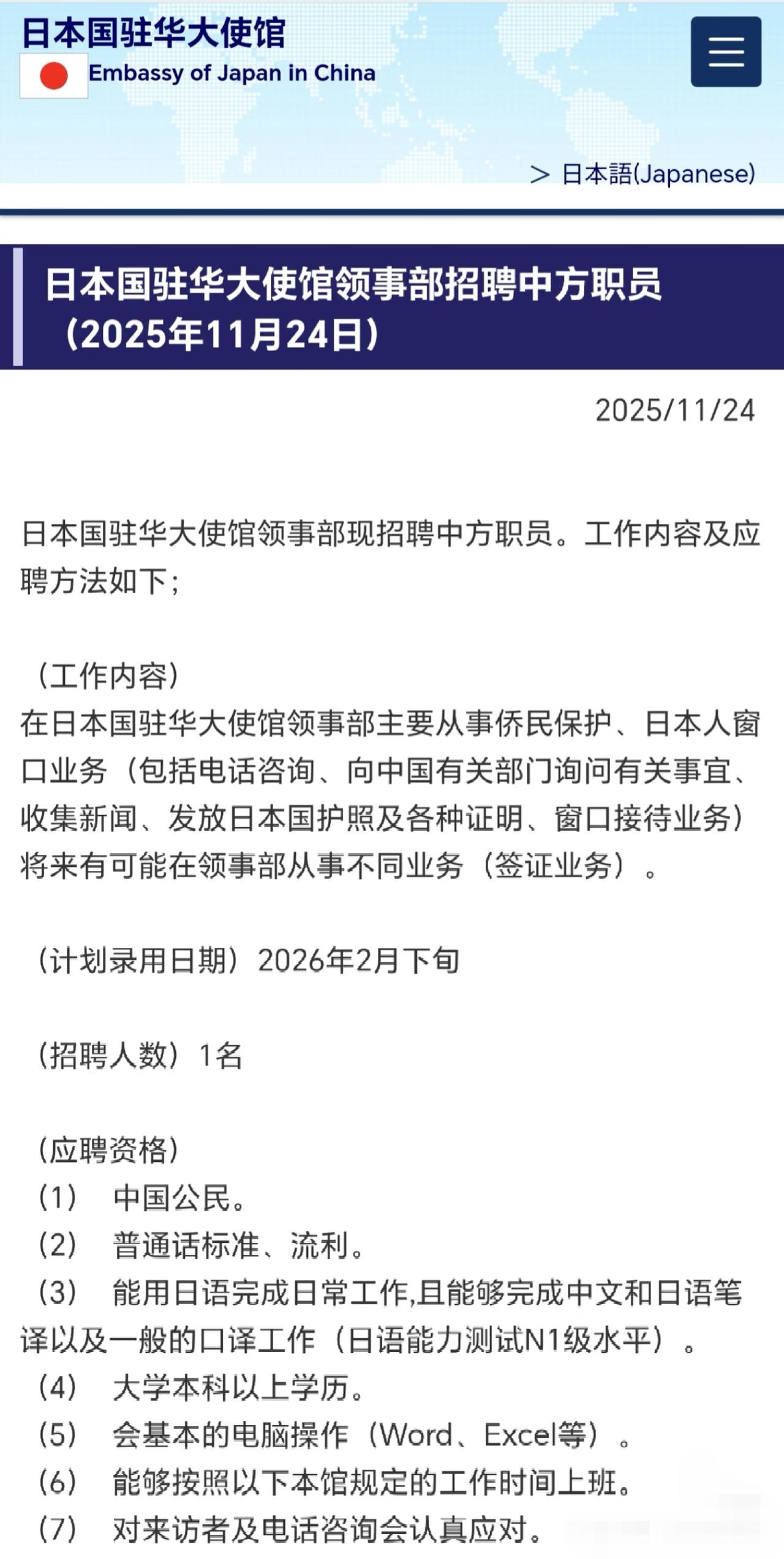 日本国驻华大使馆领事部招中方雇员了,大家看条件咋样?去的人会很多吗?