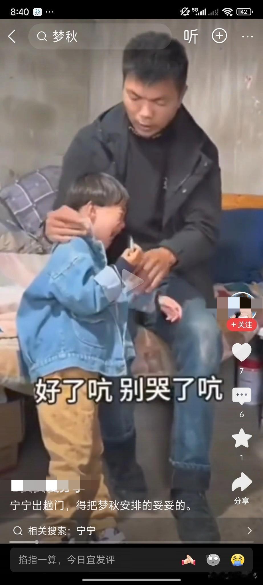 妙妙的哭声刺痛了我的心,她对姑姑的依恋很深,姑姑也许在孩子心里就是个救命稻草,此刻的宁宁温柔了很多,他安慰女儿妙妙:别哭了,姑姑马上就来了。此时我有点同情宁宁,他是一个曾经被父亲保护的残疾人,习惯了依赖父亲和姐姐,他父亲去世后,姐姐周敏或许也是他的救命稻草,牢牢抓住,我突然很心痛这个特殊家庭的父女俩,再一看到孩子在哭,梦秋还在面对镜头傻笑着扭着大胯,心里莫名的烦躁,为啥要娶这样的一个女人?难道就是为了生儿育女?关键是她有智力问题,生了两个都不正常,这种愚昧的婚姻和传宗接代的陈旧观念,才是导致这样的家庭雪上加霜的根本原因。 话说周敏亮哥带着宁宁和妙妙出去带货,把傻秋搁家里,她还知道不高兴了,他们走的时候,还安排了给她送饭的,这祖宗的日子过得太安逸了,问题是梦秋在床前屙屎拉尿,等宁宁回来,房间还能下脚不? 我真心希望智力残疾的人不要再结婚生孩子,这样不光增加家庭负担,更是给国家增加负担。
