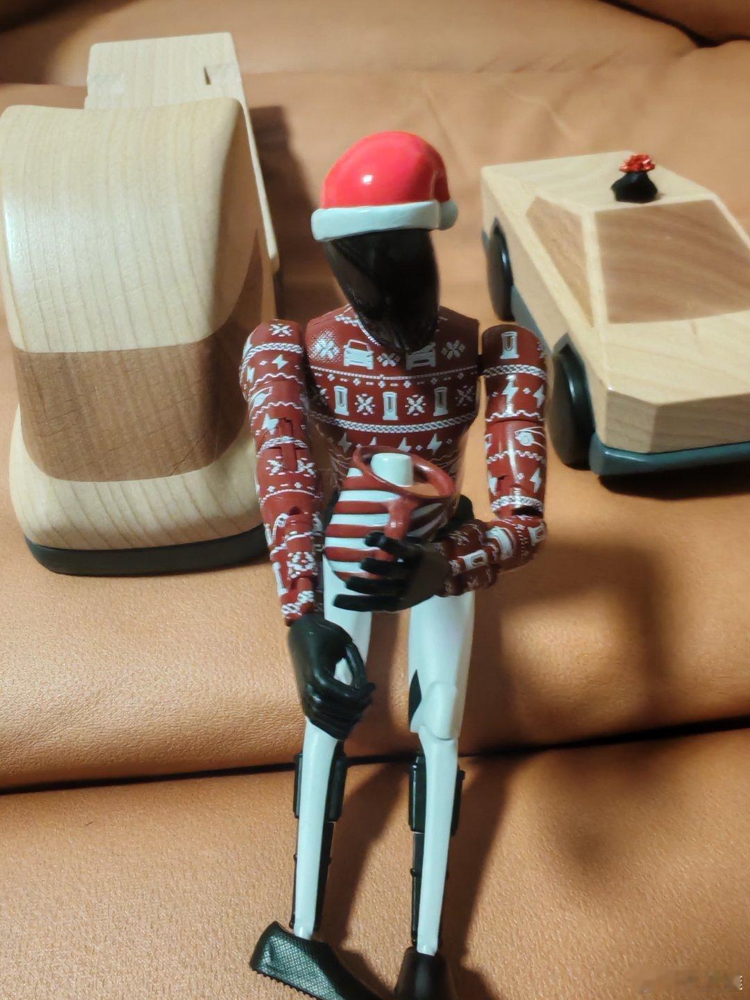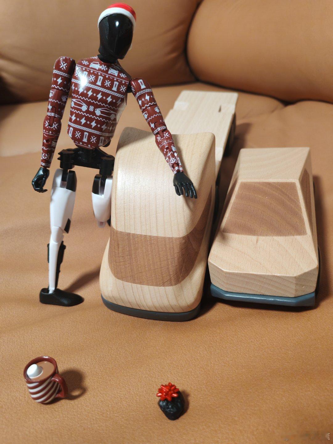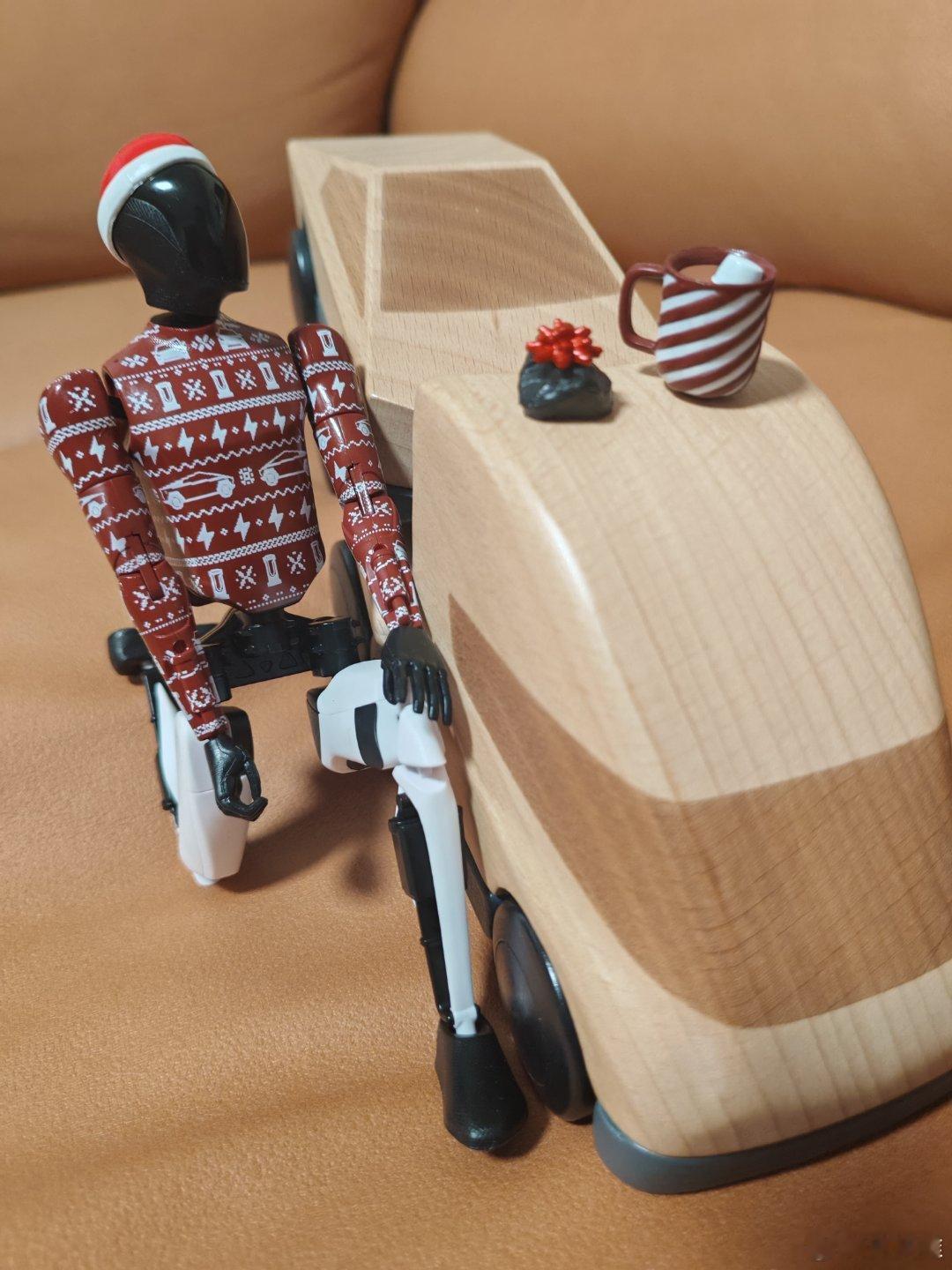 还有一个月就要过圣诞节了,节日也应该有点圣诞该有的氛围!今天,我收到了一份特别的礼物:特斯拉圣诞款摆件,里面包含一个特斯拉人形机器人可动人偶,1个特斯拉Cybertruck电动皮卡木制模型车,1个特斯拉电动重卡 Semi 木制模型车,1个棉花糖马克杯,1煤块玩具。这个人形机器人偶是真的灵活,你可以随心所欲的让它摆各种造型,如果大家还在纠结圣诞送什么礼物给朋友,我觉得特斯拉圣诞摆件就是一个不错的选择!科技先锋官