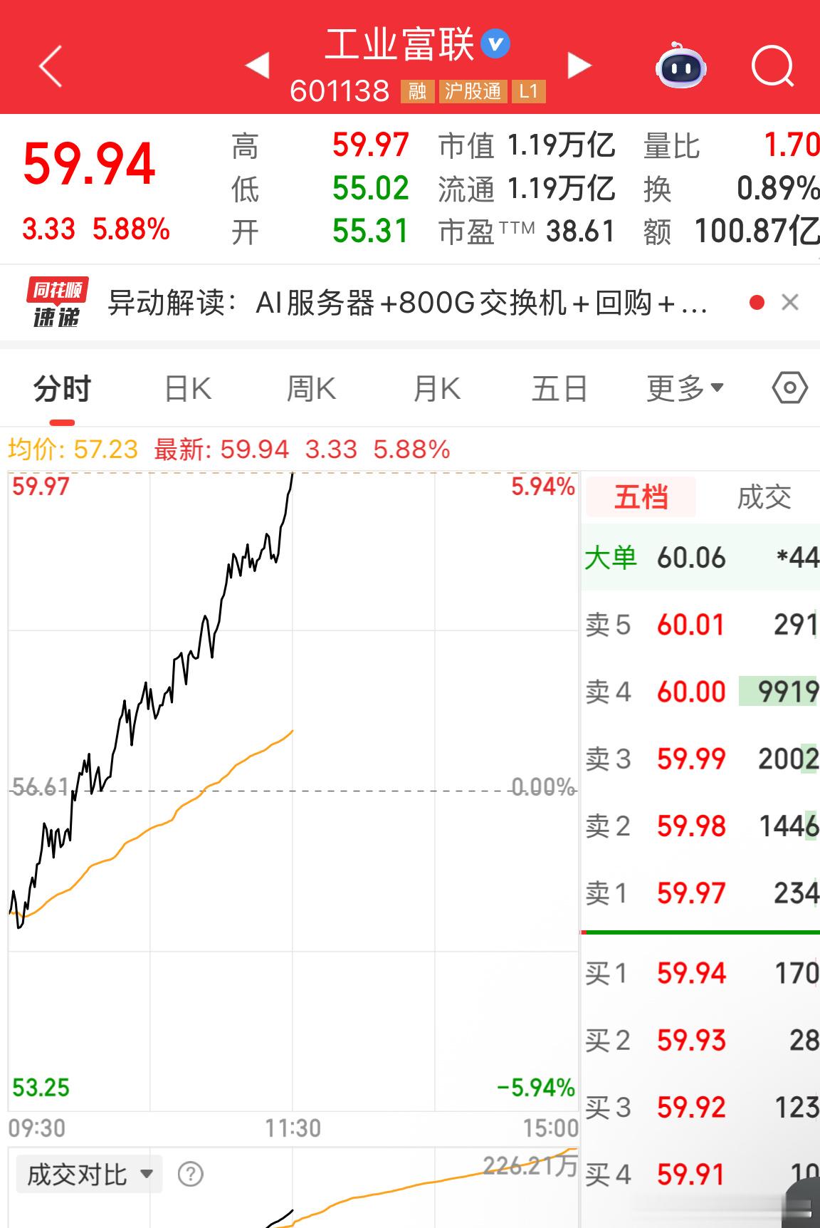 早上分享粉丝朋友一对一的工业富联今天有点强势!上车就是3CM大鸡腿🍗 恭喜跟上车的朋友,评论留下178一起发!🎉