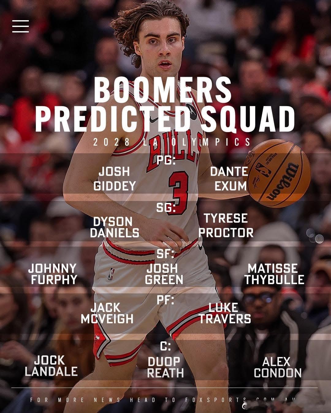 澳大利亞2028奥运的预测阵容不论成绩,阵容已经完成更新换代。看起来,本国联赛NBL依然只会为一队输送1-2人。艾克萨姆和兰黛尔到时都33岁了,不知道竞技状态如何。洛杉矶奥运会