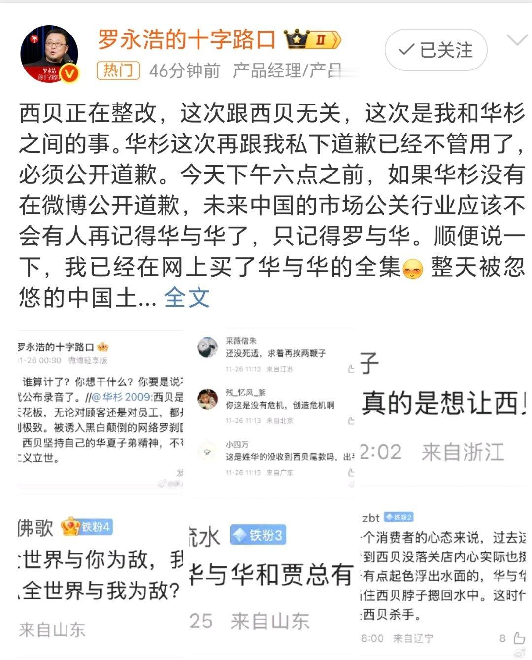 罗永浩 华杉有人说华与西北有仇,老罗被当枪使了,这脑洞真是大开,不过说的也能听下去。就感觉是真的没有流量一样,再拿老罗蹭流量,确实牛