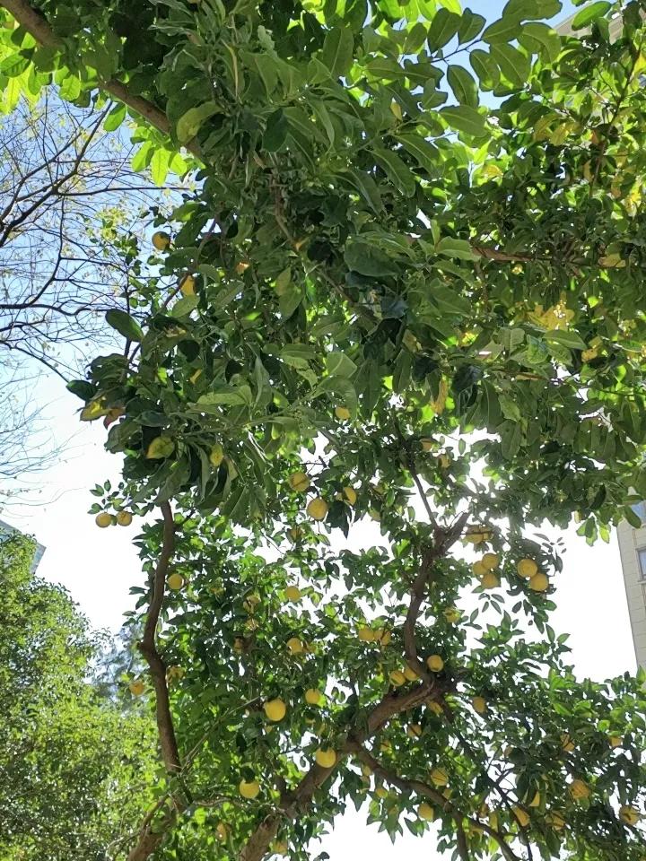 冬日生活打卡季小区里的观赏橘子,挂满树的枝头,个头大,圆圆的,黄灿灿的,看着真喜人,大家有所不知,这种橘子树开花时很香的,白色的小花朵,随着浓香味,大家路过都要抬头看看