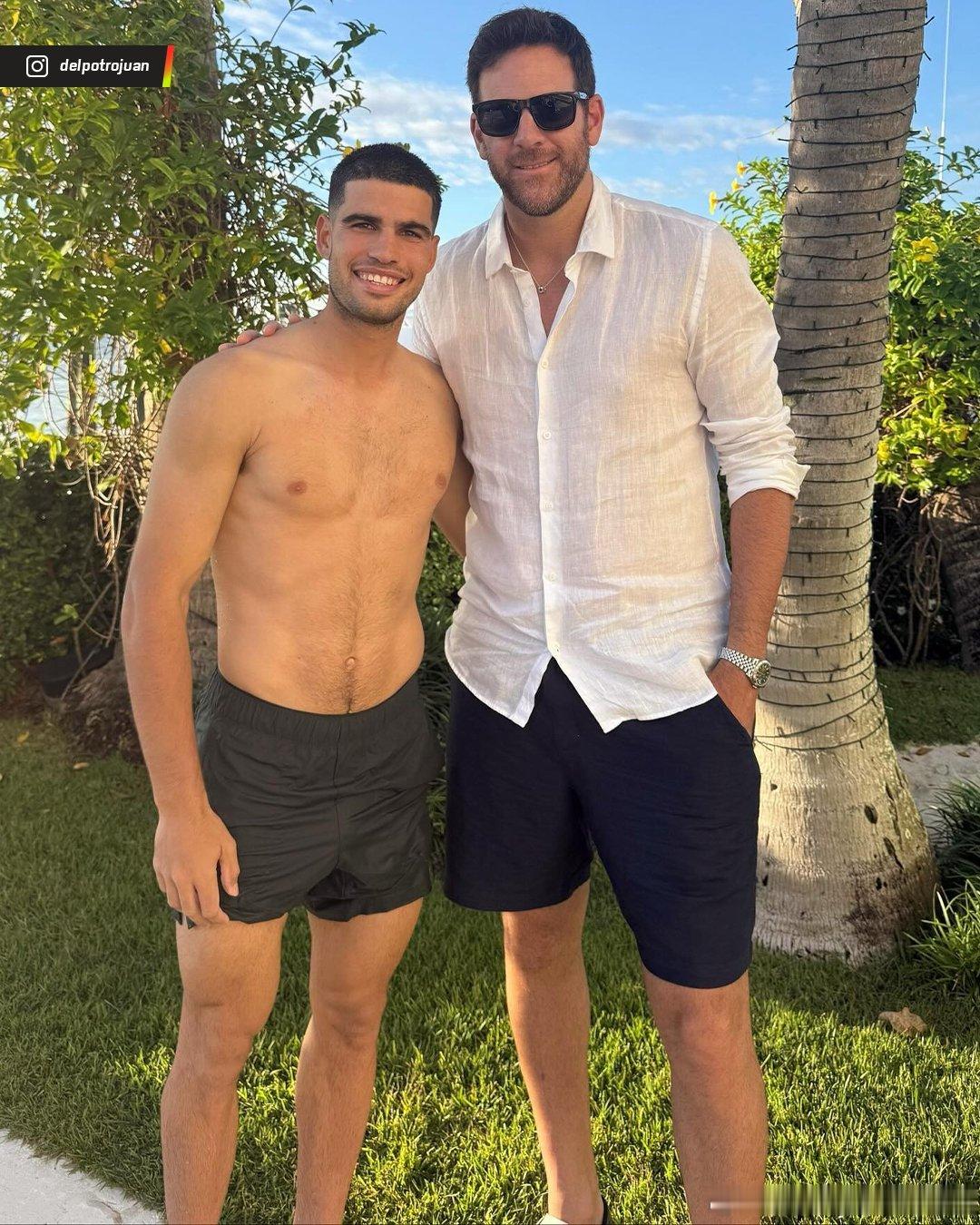 阿尔卡拉斯🤝德尔·波特罗!Carlos把头发弄回黑色的了,和Juan Martin“大菠萝🍍”在迈阿密度假时候相遇了!菠萝配文:再次见到你总是很高兴,朋友😊!
